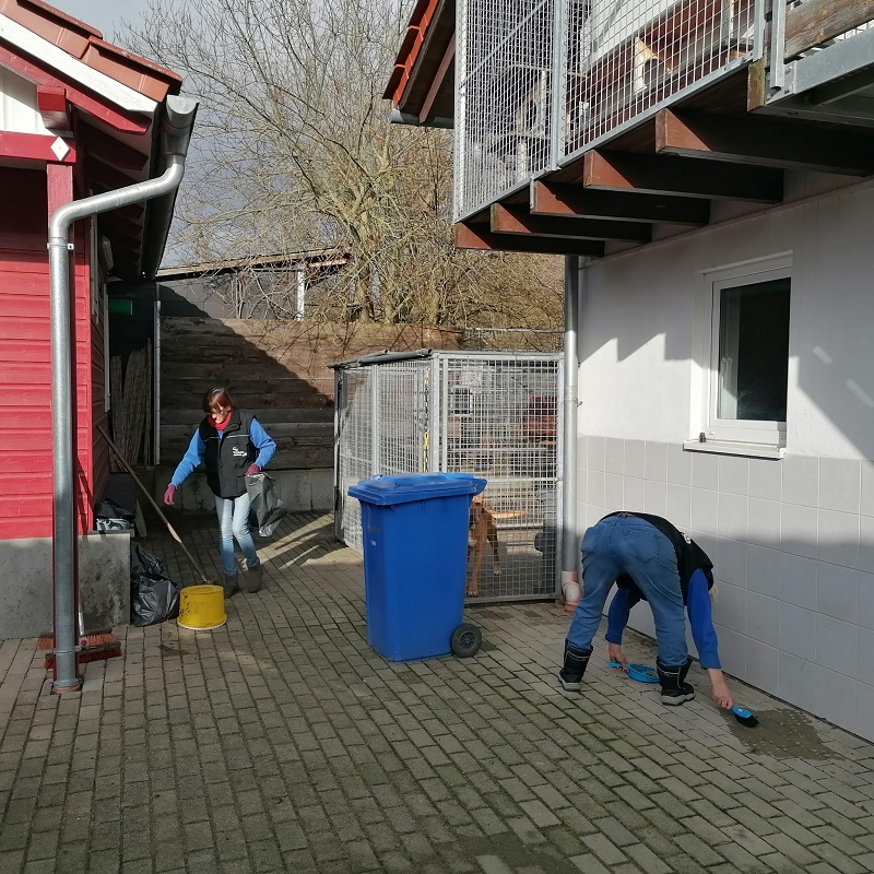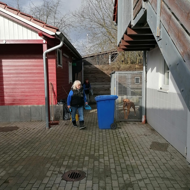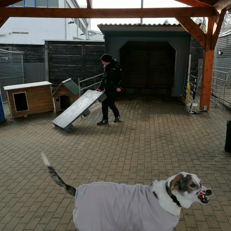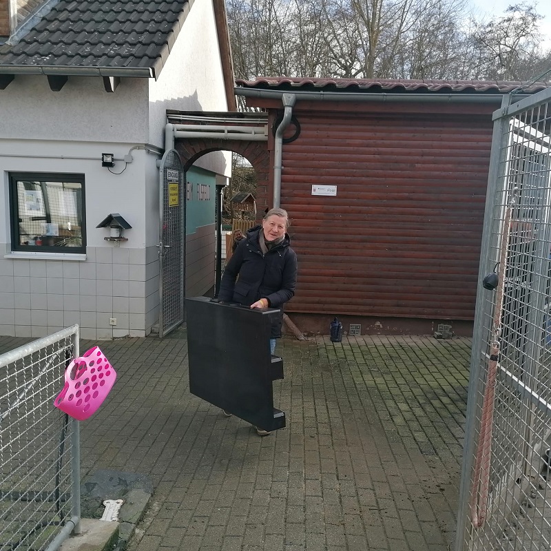Auch unsere neu gespendeten Paletten wurden direkt in die Hundeausläufe und in die Gruppen gelegt.