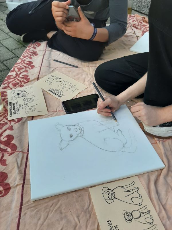 Jeder/jede TeilnehmerIn durfte sein/ihr Lieblingstierheimtier zeichnen und wer mochte, durfte noch einen passenden Spruch oder Wunsch dazu schreiben.