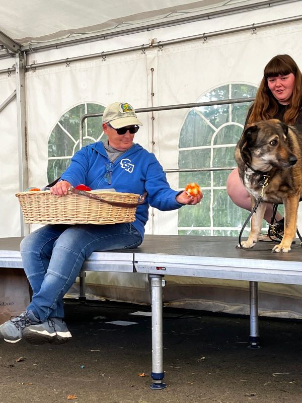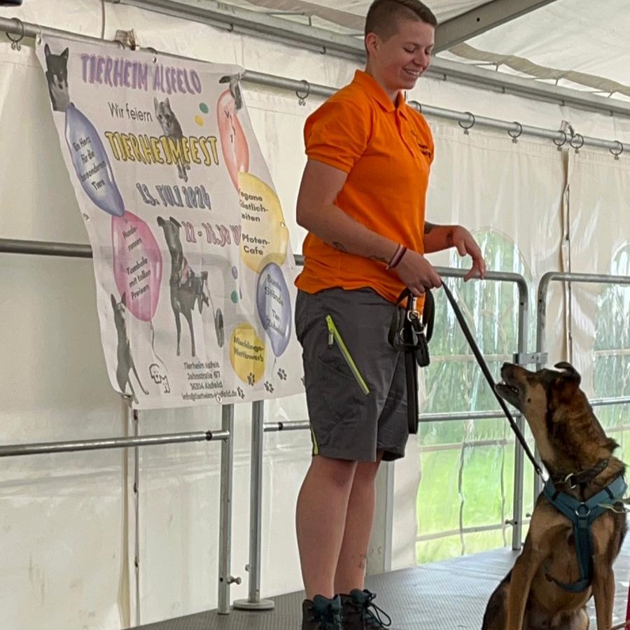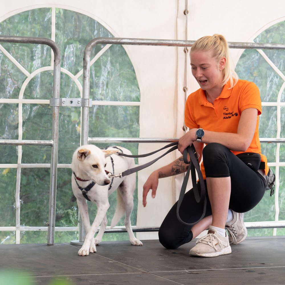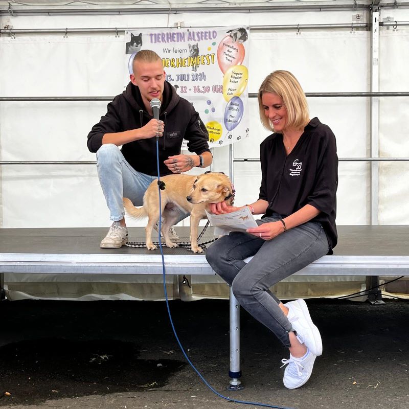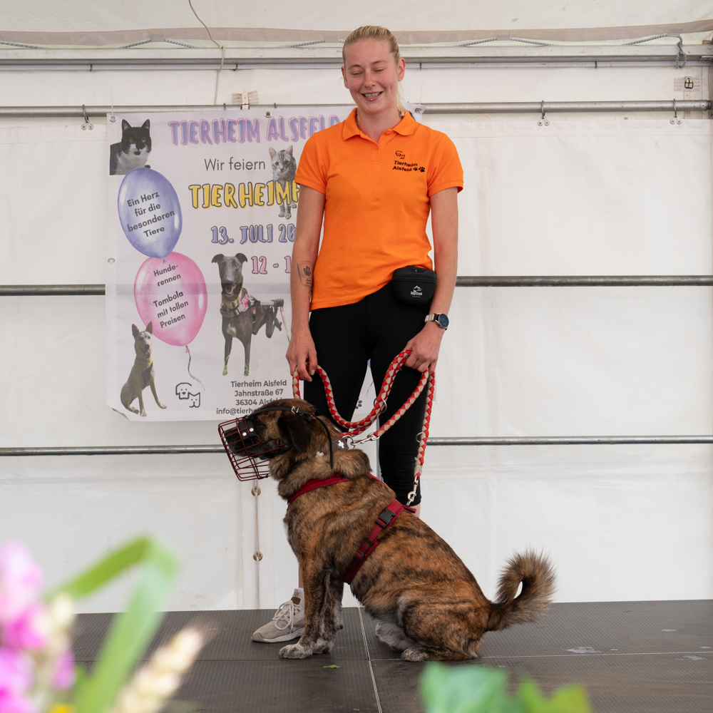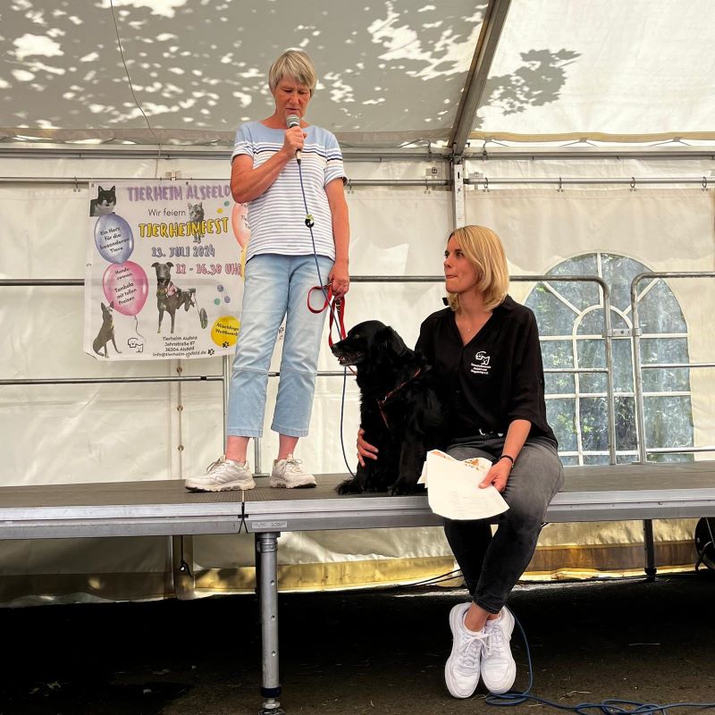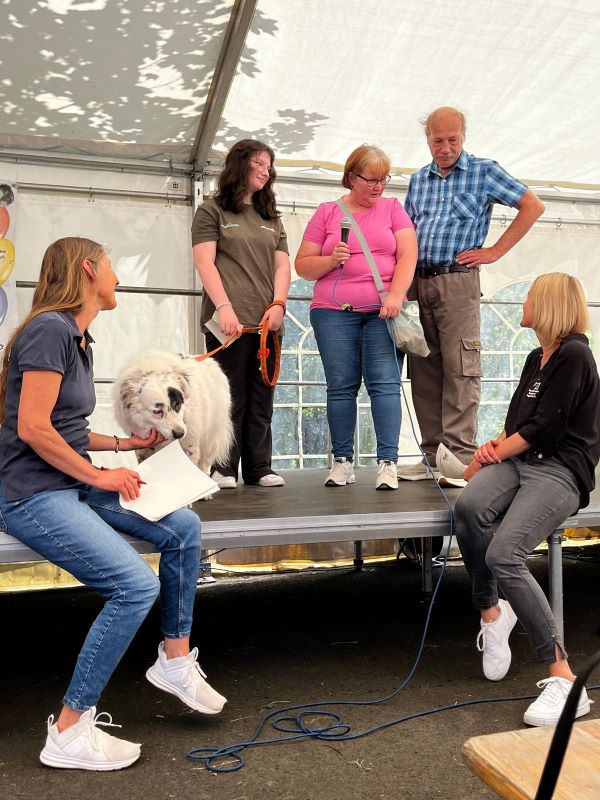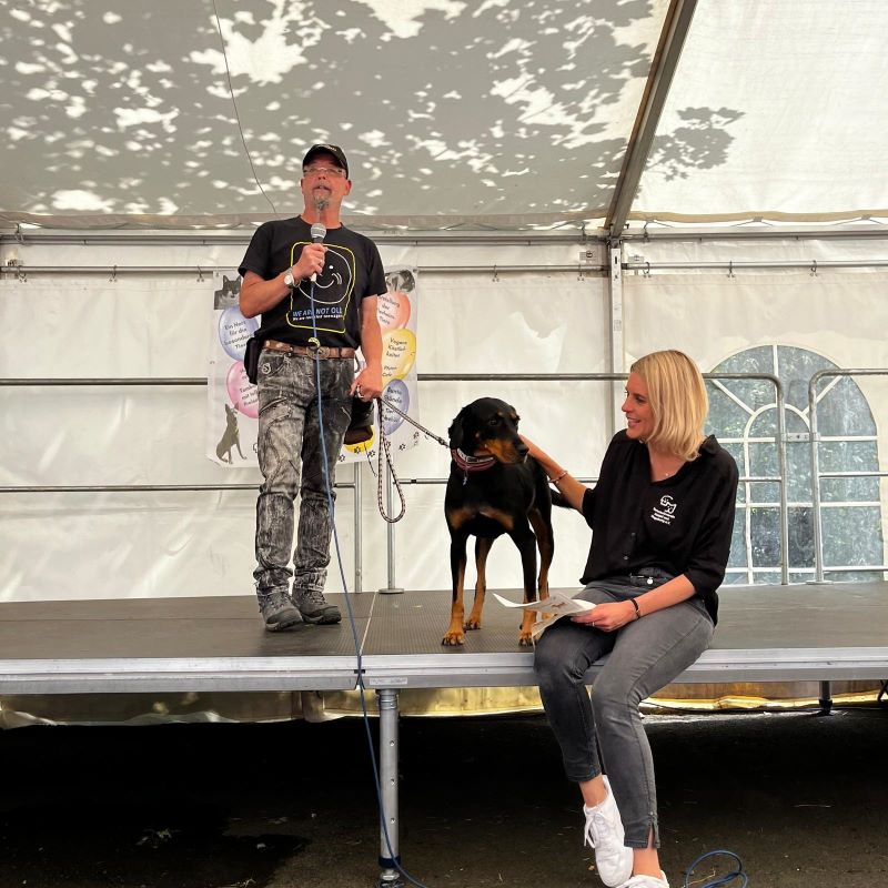 Erstmalig stellten unsere Mitarbeiter einen Teil unserer Tierheimhunde auf der Bühne vor. Sie standen vertraut mit ihrer Bezugsperson auf der großen Bühne im Zelt vor Publikum und haben sich so toll präsentiert.
