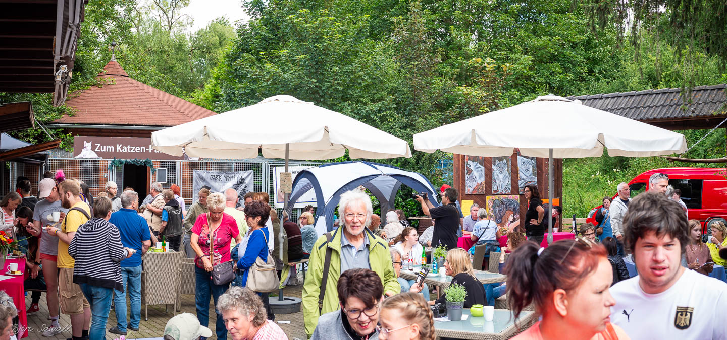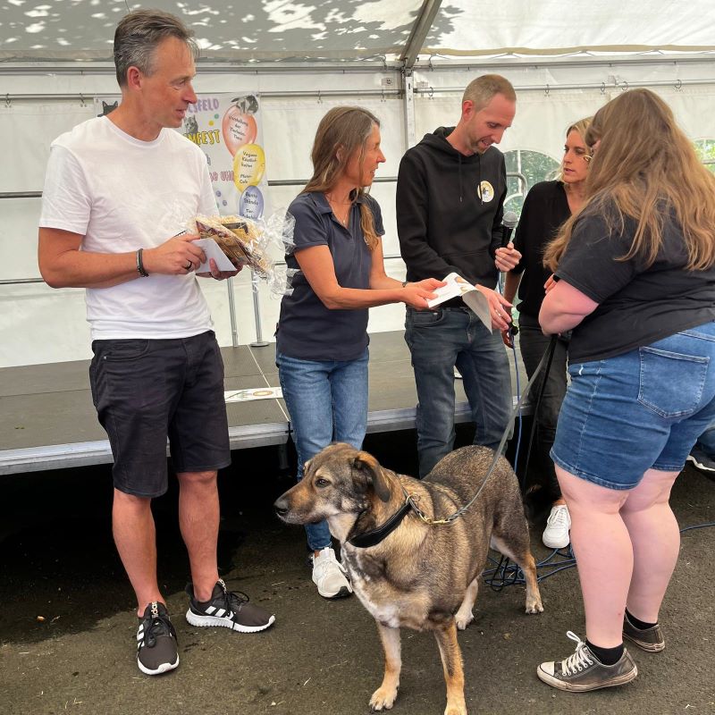 Wie immer war unsere Tombola heiß begehrt. Rund um unser Pfotencafé sammelten sich die Besucher bei leckerem Kaffee und Kuchen, Pommes und einem veganen Dönerteller.
