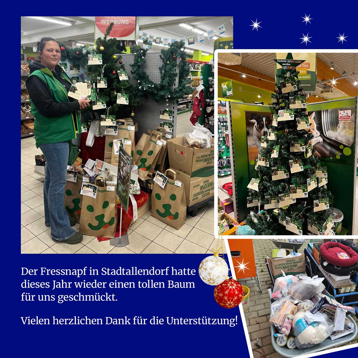 Wir bedanken uns ganz herzlich bei den Fressnapf Märkten in Alsfeld und Stadtallendorf, dass wir die Möglichkeit hatten, dort die Weihnachtswünsche unserer tierischen Bewohner an den Weihnachtsbaum zu hängen.
