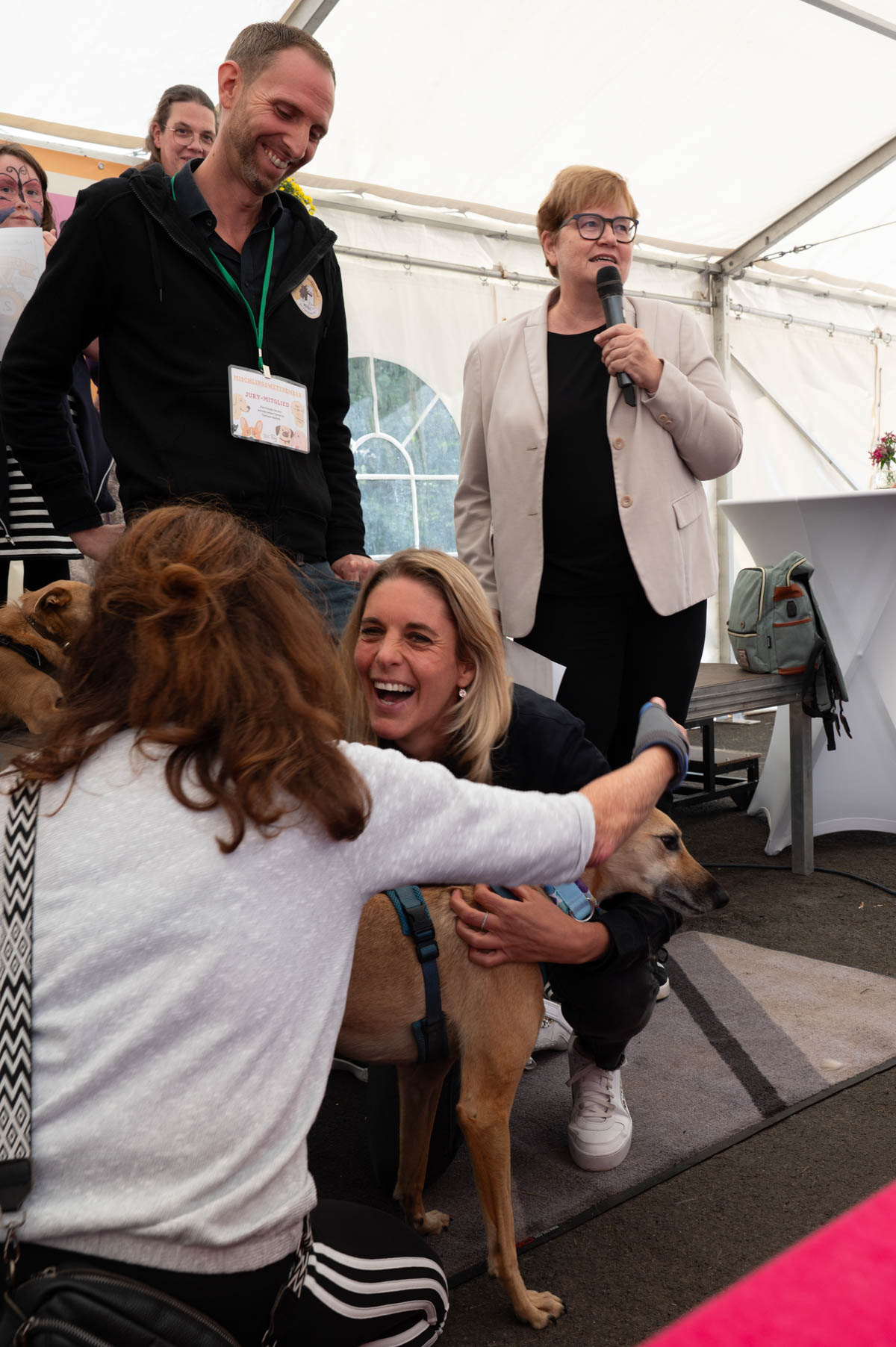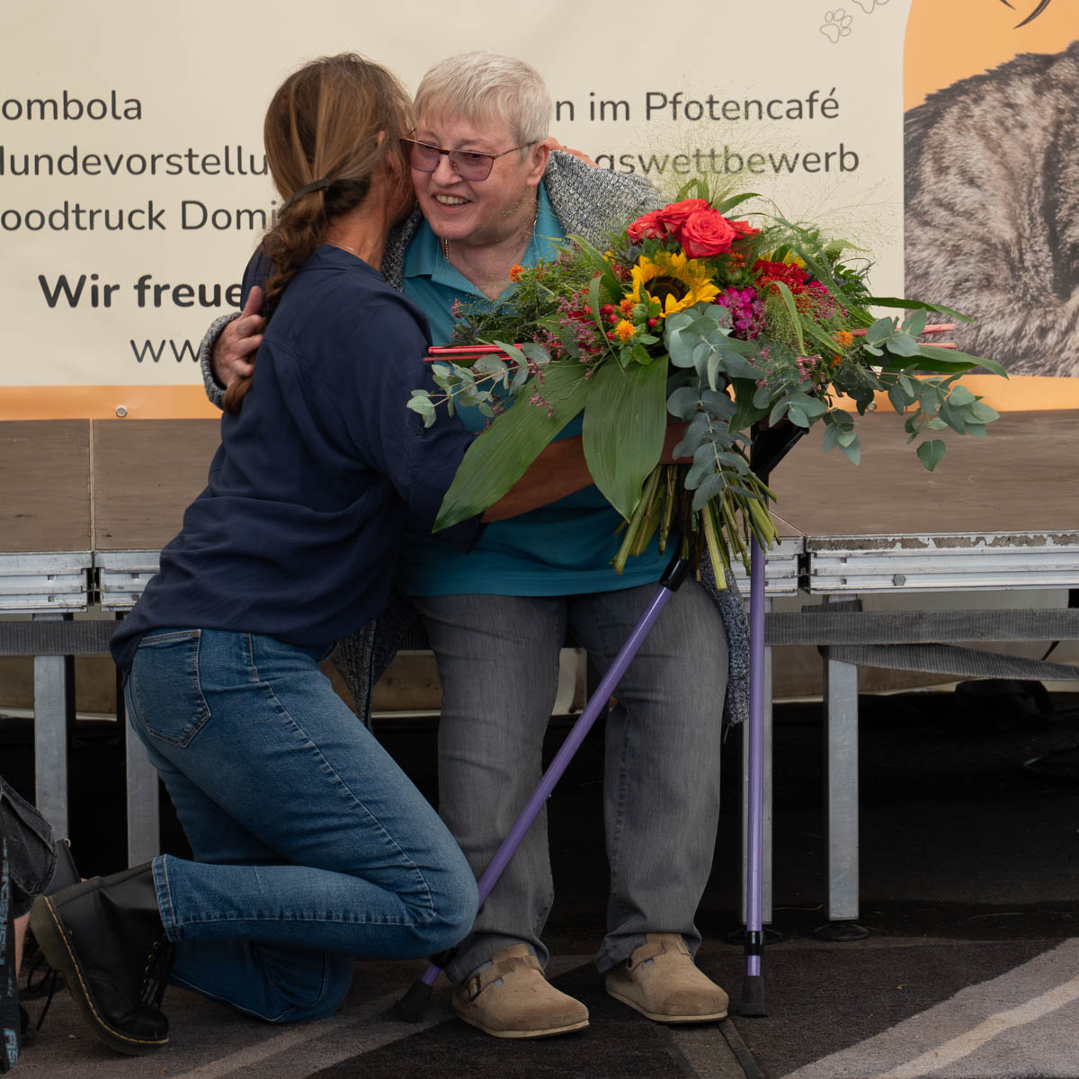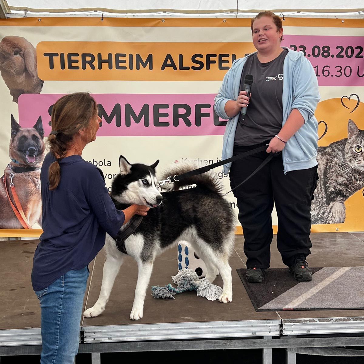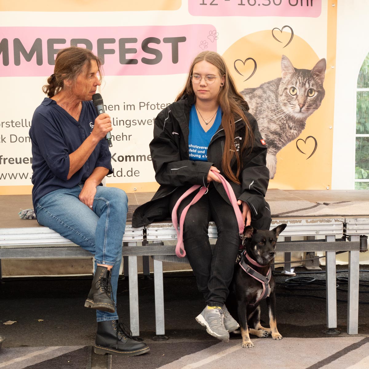 Los ging es mit der Eröffnungsrede der 1. Vorsitzenden Ann-Catrin Schmidt, die über die „Wunder“ in unserem Tierheim sprach. Von Tieren, die trotz Handicap ein traumhaftes Zuhause gefunden hatten und von dem Hoffen und Bangen im Tierschutz und das es ohne die Mitarbeiter nicht zu stemmen wäre. Diesen wurde dann in einem extra Punkt auf der Bühne gedankt sowie einzelnen Helfern, die mit besonderem Einsatz glänzten. Ein ganz großes Dankeschön ging an die Vorstandsbeisitzerin Gerlinde Grebe. Sie hat das Sommerfest wieder mit einem Team geplant und für alles gesorgt (Anträge und Genehmigungen einholen etc.), damit dieses reibungslos stattfinden konnte. Absolut klasse! Ohne die eifrige Hilfe für all die Vorbereitung, Planung, Auf-/ Abbau, Dekoration und allem, was dazu gehört, wäre so ein Fest nicht ohne diese großartige Hilfe möglich gewesen. Danke an alle Helfer!