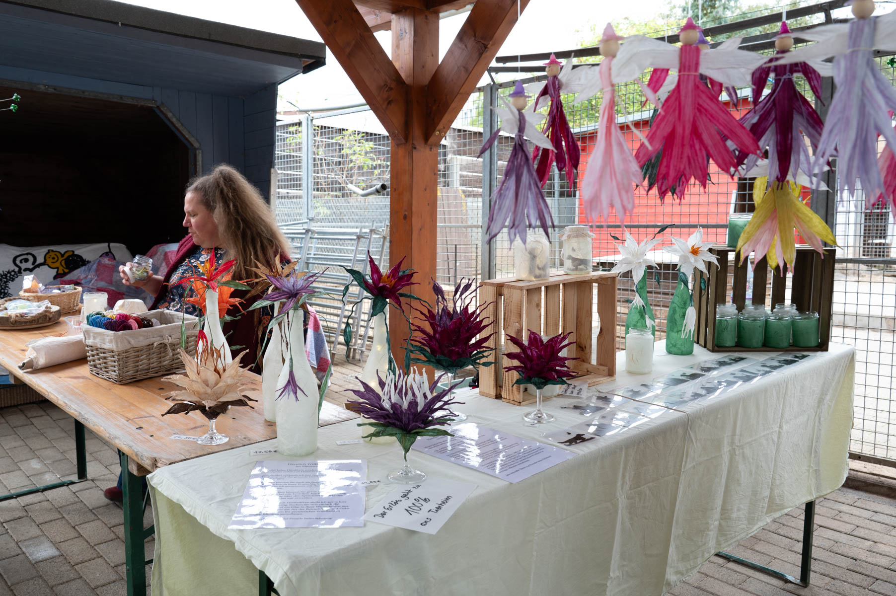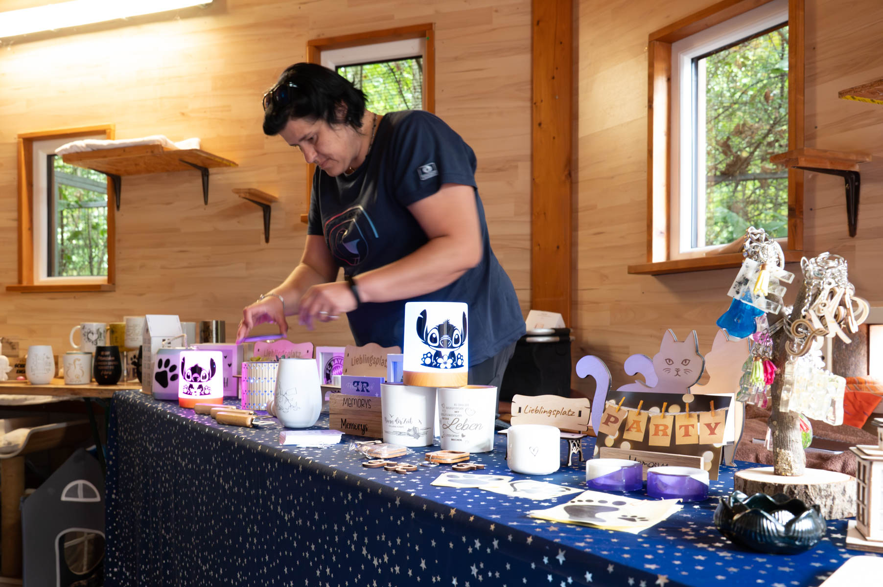 Zahlreiche tolle individuelle Stände, die das Käuferherz höherschlagen ließen, reihten sich aneinander. Ob Deko, Schmuck, Tierbedarf, Nützliches – hier war für jeden etwas dabei. Auch informative Stände wie die Wildtierhilfe Schäfer, Wolfsschutz Deutschland, die Tierhilfe Hoffnung, Barmenia Tierkrankenversicherung, Alsfeld erfüllt Herzenswünsche, Tierphysio dogPAW, Reico Tierfutter, die Hundeschule DogRoots uvm. zogen viele Interessierte an.