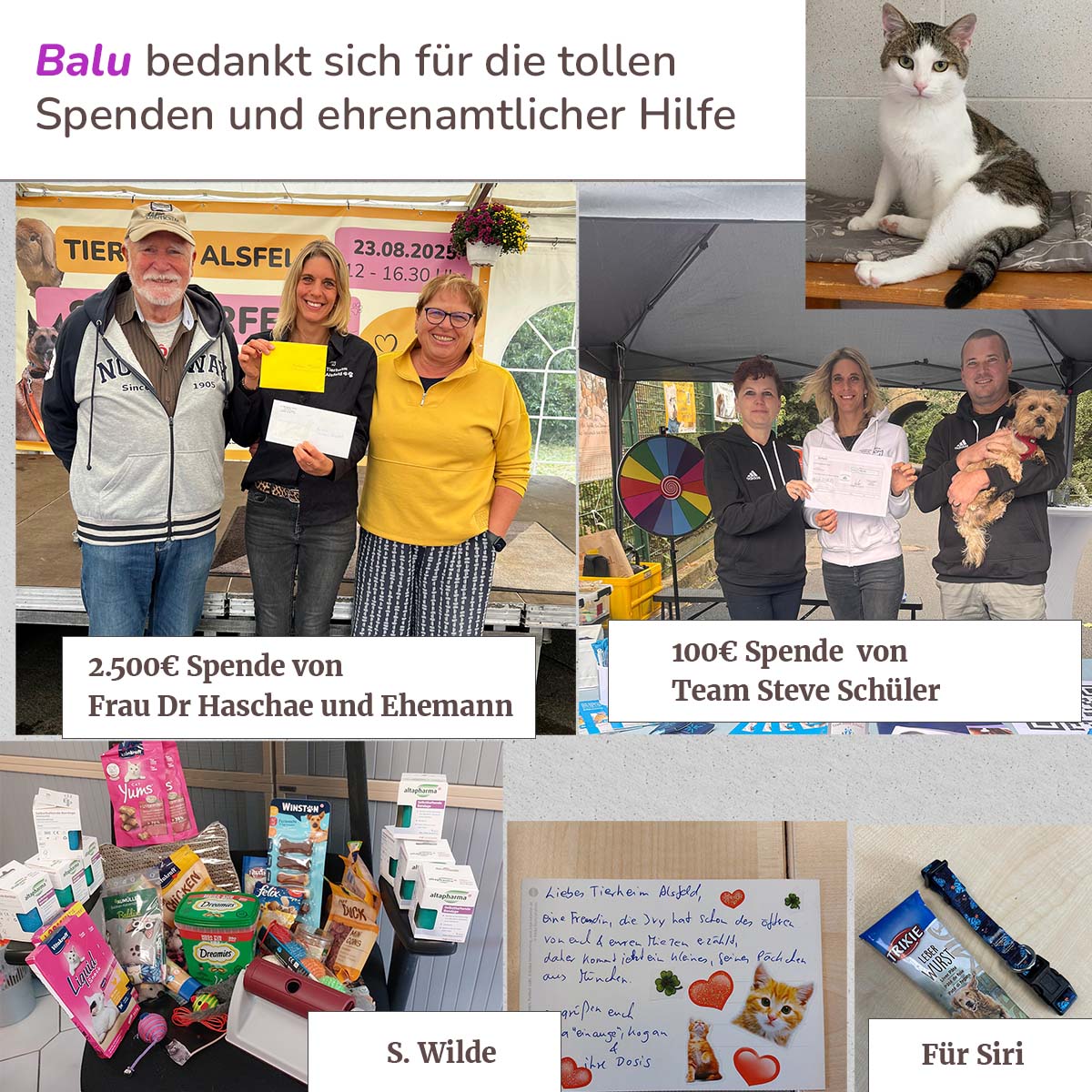 Wir erhielten wundervolle Spenden für die Tombola, gespendete Einnahmen, Spenden, die während des Sommerfestes überreicht wurden, sowie an den Tagen zuvor und danach. Der August war wirklich für uns ein entscheidender Monat. Dafür danken wir euch von ganzem Herzen.