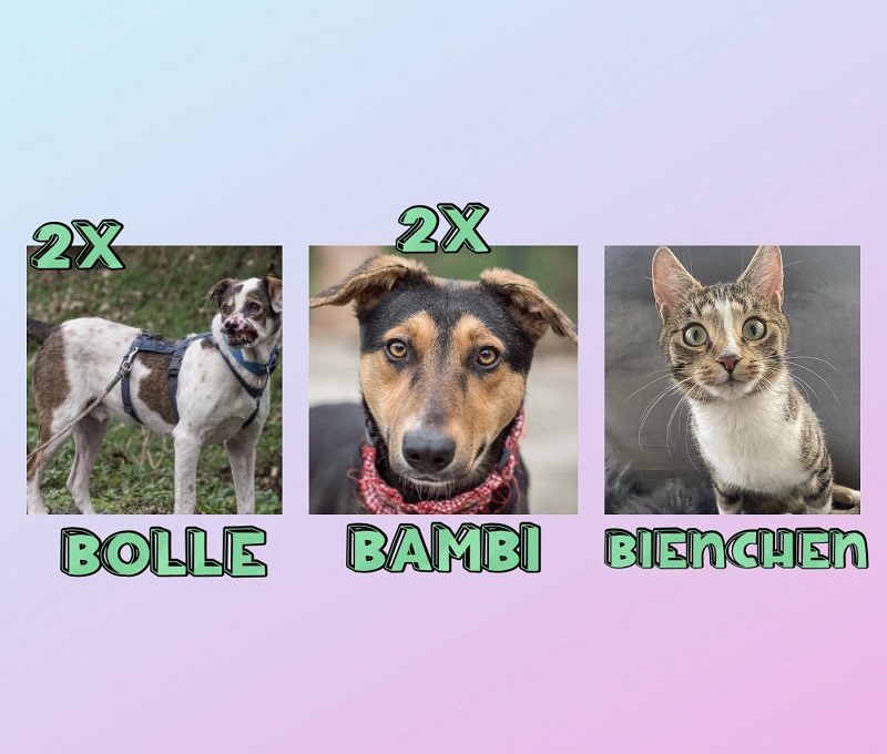 Wie Sie wissen, kommen jetzt erstmal unsere Tierchen die es in der vergangenen Woche geschafft haben, tolle Paten für sich zu gewinnen. Hier sind die Glücklichen: