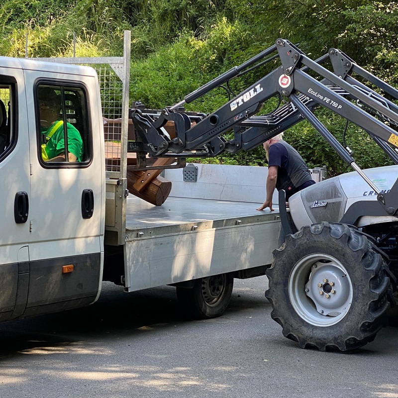 Die Wochen vergingen und wir warteten sehnsüchtig auf den Liefertermin. Nun endlich war es soweit. Die Bänke wurden angeliefert, aber sehen Sie doch am besten selbst: