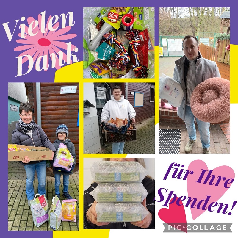 Liebe Tierfreunde, hier kommt der Dankesrückblick auf ihre Spenden der letzten zwei Wochen. So viele sagenhaft, tolle Spenden haben Sie uns zukommen lassen. Ein ganz großes Dankeschön. Auch viele hilfreiche Bar-Spenden gingen bei uns ein. Einen kleinen Supergau gab es noch, denn unser Industrietrockner ging kaputt und musste repariert werden. Kosten, mit denen wir nicht gerechnet haben, aber da trat Steffi Reschke mit ihrem Weihnachtsgeschenk an uns heran und trug 500€ von der Rechnung. Einfach grandios. Vielen lieben Dank liebe Steffi.