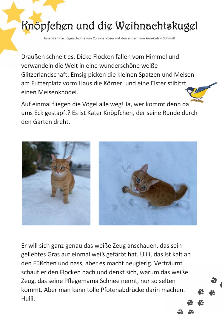 um Ihnen die Zeit noch bis Weihnachten etwas zu verkürzen, haben wir für Sie eine Weihnachtsgeschichte um Kater Knöpfchen und seiner Weihnachtskugel.