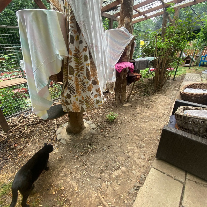Corinna hat sich bei uns dieser Aufgabe angenommen und wollte den Katzenbereich wieder für die dortigen Bewohner – aktuell die O-Gang - hübsch machen.
