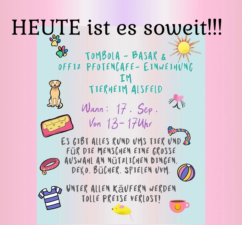 Weiterlesen: 17.09. - Tombola-Basar und "Neu"-Einweihung des Pfotencafés