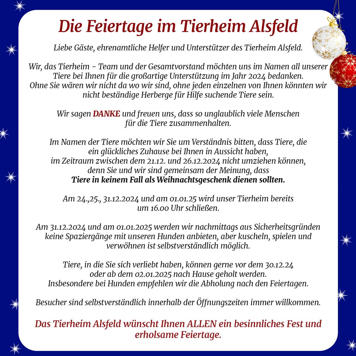 Auch bei uns im Tierheim läutet die Zeit der Besinnung, des Rückblickes und des Dankes ein. So möchten wir unseren Dank aussprechen, denn ohne all die wunderbaren Helferinnen und Helfer hätten wir das Jahr 2024 für die Tiere nicht bewältigen können.