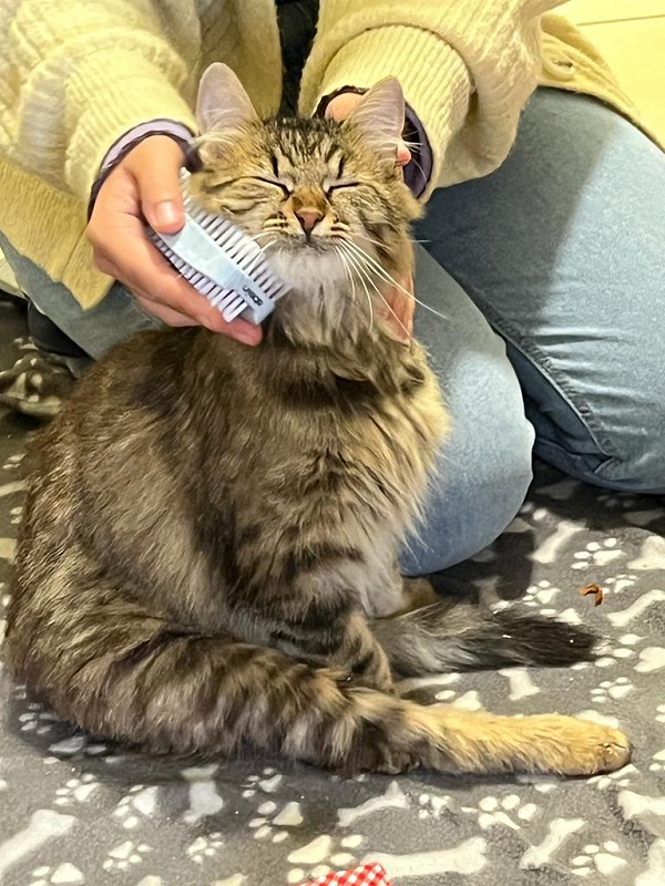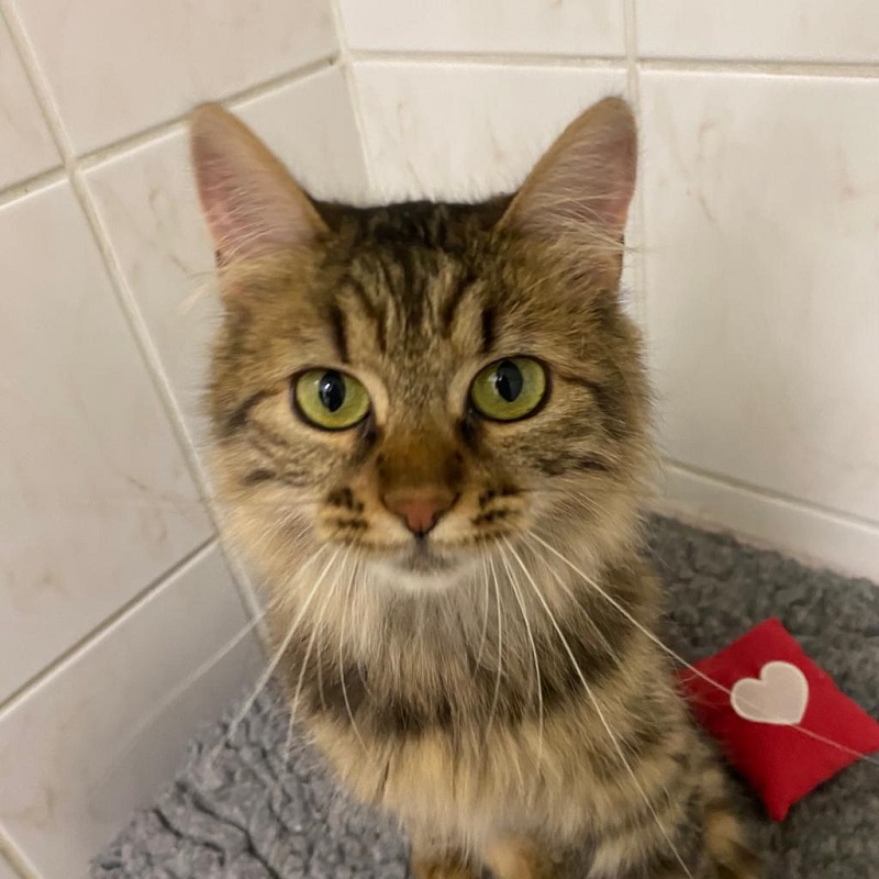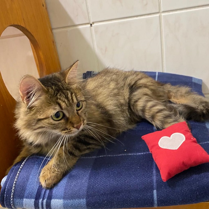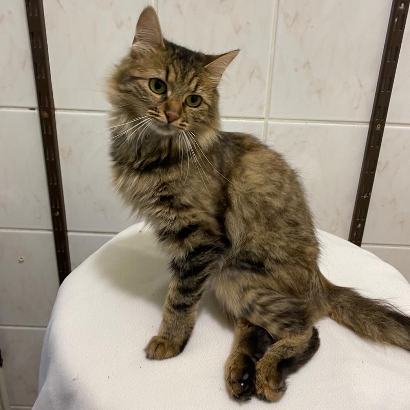 Prinzessin haben wir von unserem Partnerverein der Tierhilfe Hoffnung übernommen. Prinzessin trägt den Namen nicht umsonst, denn wenn man sie kennenlernt ist es tatsächlich der erste Begriff der einem zu dieser hübschen Katze einfällt. Sie liebt den Menschen. Sie liebt es im Mittelpunkt zu stehen und gestreichelt sowie gekämmt zu werden. Mit ihren Artgenossen kommt sie soweit zurecht. Sie akzeptiert sie in ihrer Umgebung und nimmt aber keinen größeren Kontakt zu ihnen auf. Vielleicht war auch noch nicht der richtige Kumpel dabei. Prinzessin hat eine Teillähmung im hinteren Bereich, aber mit Eigenbewegung. Sie bekommt fleißig Physiotherapie und nach bereits 4 Terminen, kann man schon eine Verbesserung sehen. Früher zog sie ihre Hinterbeine hinter sich her. Mittlerweile schafft sie es, dass sie eines per Muskelkraft nach vorn zieht. Das ist großartig! In den Stunden macht sie auch immer sehr vorbildlich mit ihrer Menschenfreundin Luise mit.