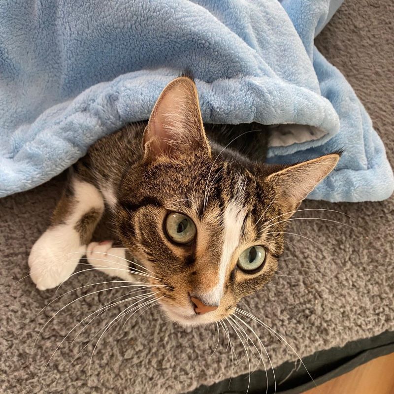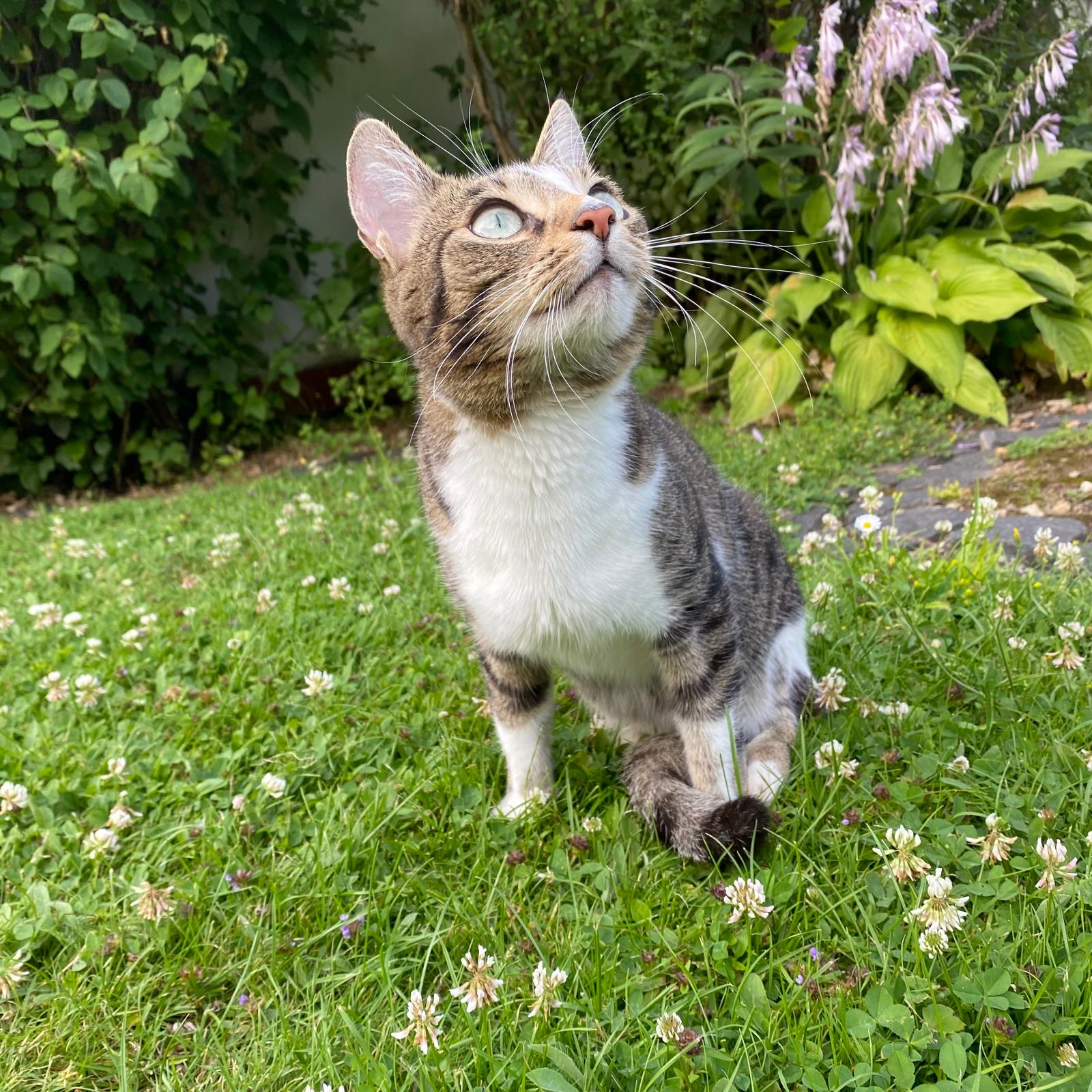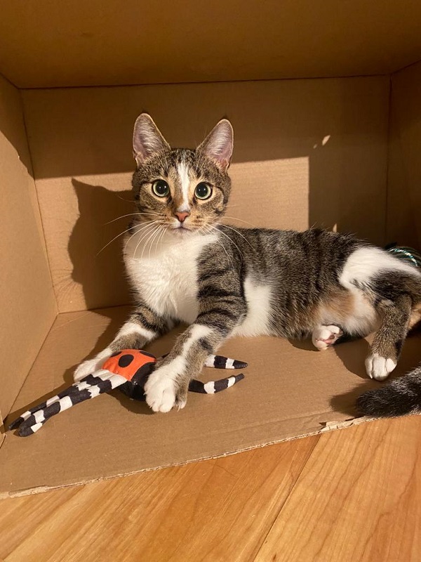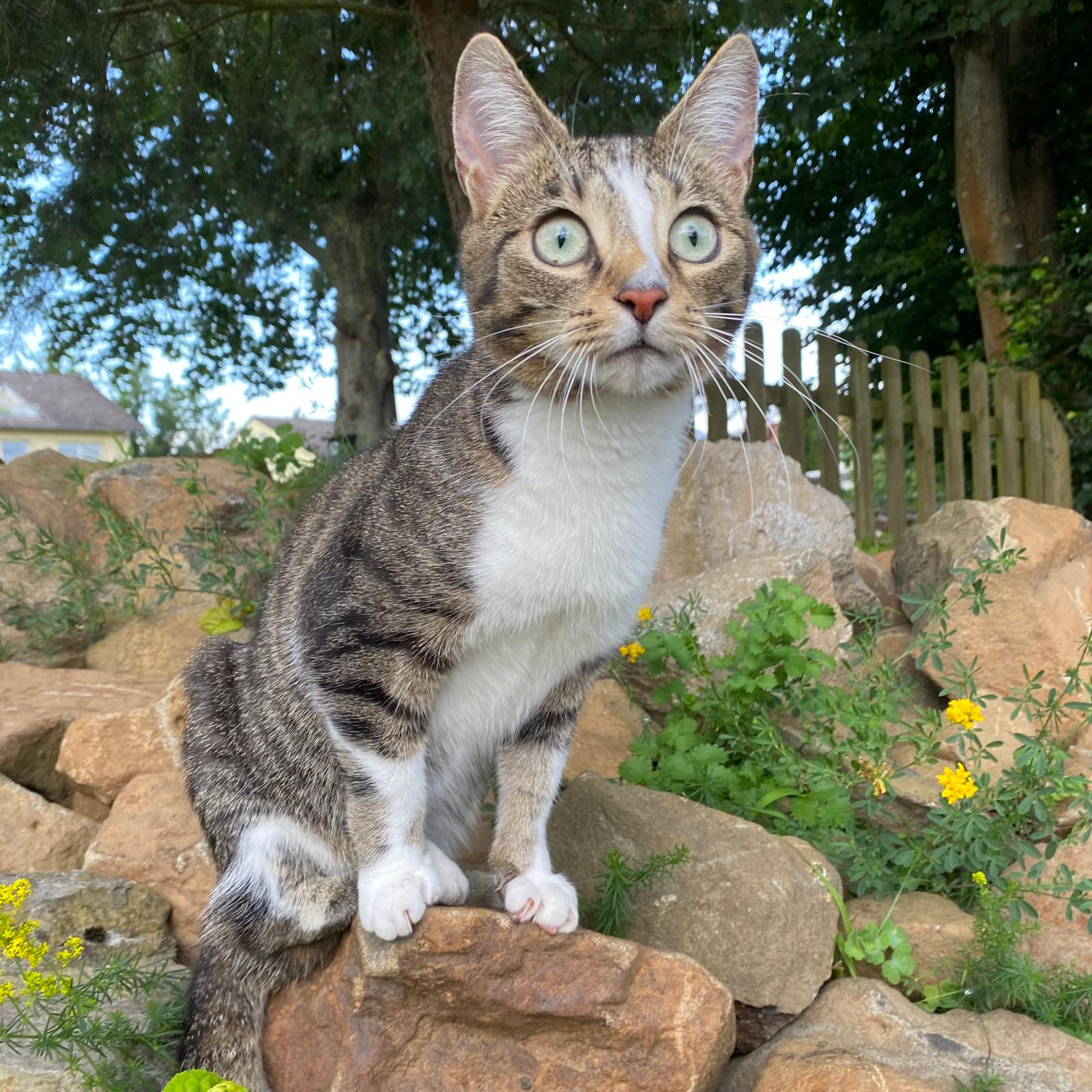 Aktuell lebt sie sich wieder mit Knöpfchen und den anderen Katzen des Hauses ein.