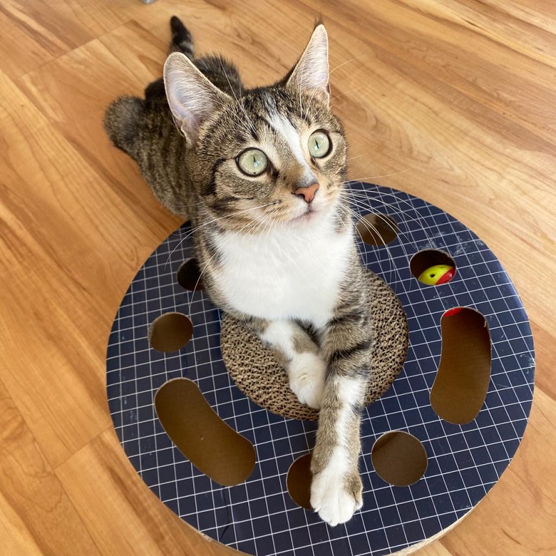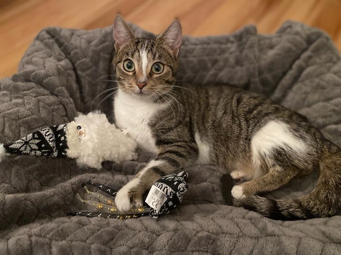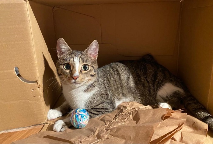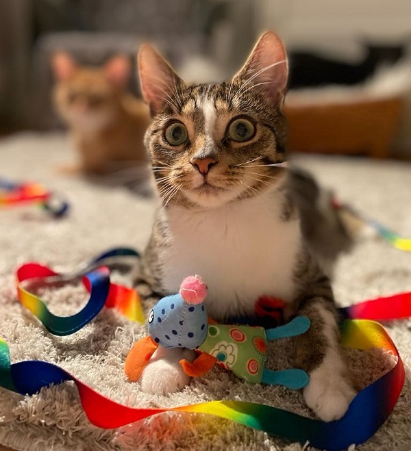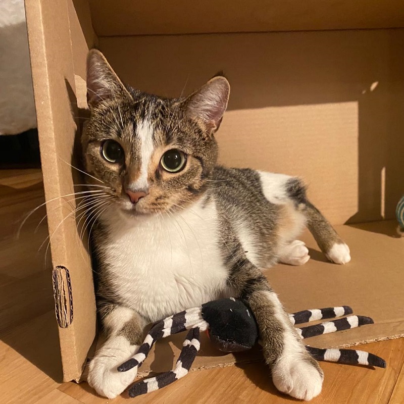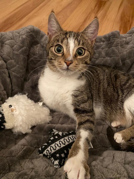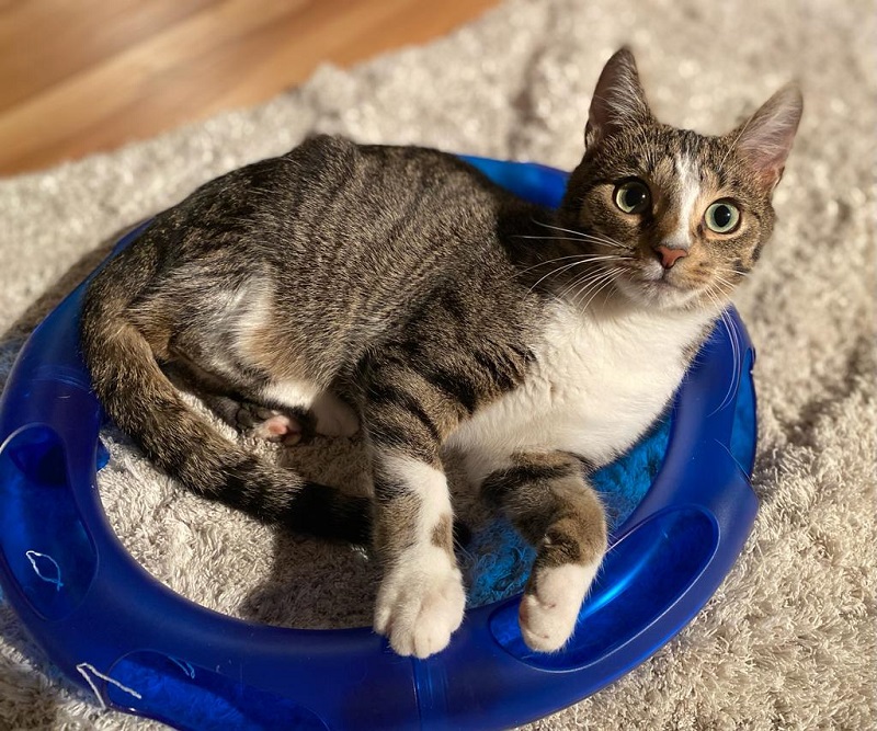 Aktuell lebt sie sich wieder mit Knöpfchen und den anderen Katzen des Hauses ein.
