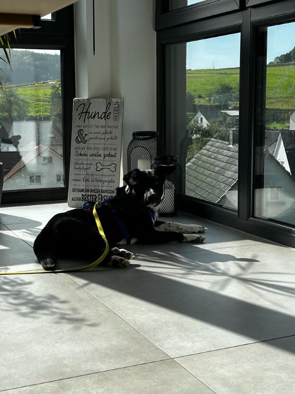 Sie ist stubenrein, kann alleine bleiben und wuselt mitten durch die Hundegruppe. Sie zeigt sich bei uns und auch im Tierheim mit allen Hunden verträglich. Sie liebt es, im Garten zu sein und mit den anderen Hunden zu toben oder auf dem Sofa zu liegen und zu entspannen.