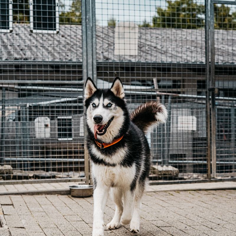 Anouk ist ein zwei Jahre alter kastrierter Husky-Rüde, den wir im Juni 2025 aus dem Tierheim Darmstadt übernommene haben und seitdem ein Teil unseres Tierheims ist.