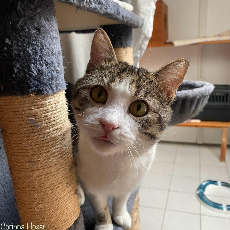 Hier kommt Geronimo. Sein Name ist Programm! Der tolle Kater ist ein charakterstarker Kerl und sucht seine Menschen! Er ist unheimlich verschmust und verspielt. Wenn er etwas nicht bekommt, was er aber will, dann hat er kein Problem damit seine Menschen zu erziehen. Da gibts mal einen Klapps mit der Pfote oder die Zähne werden eingesetzt, aber ACHTUNG: Er verletzt nicht. Er beißt nicht fest bzw. schmerzhaft zu. Er macht einfach seinen Standpunkt klar. Man kann ihm aber auch nicht böse sein. Mit seinen Artgenossen kommt er klar. Er kann alleine ausziehen oder ein ebenfalls sozialer und charakterstarker Kumpel/Kumpeline wartet auf ihn. Ängstliche Katzen würde er dominieren. Das wäre für diese keine gute Kombi. Aktuell bewohnt er das Zimmer nur mit Mädels, da es unter den Katern Konflikte gab. Dies kann noch hormonell bedingt sein und aufgrund der Raumenge. Man darf nicht vergessen, dass er von einem Hof stammt und sich die Katzen aus dem Weg gehen konnten, wenn es mal ärger gab.