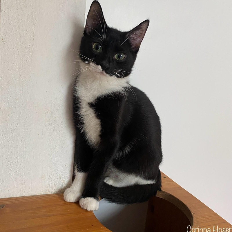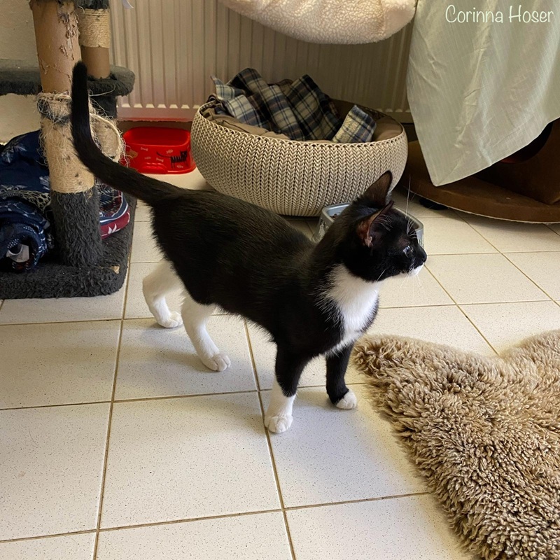 Der aufgeweckte Jungkater ist neugierig und auf zack. Er möchte die Welt gerne erkunden und liebt Spiel und Spaß. Mit seinen Artgenossen kommt er super zurecht und er liebt den großen Balkon, auf dem mittlerweile das Laub der Bäume hineinfällt. Für ihn würden wir uns Freigang wünschen, da er einfach ein kleiner Entdecker ist und ein kleines Energiebündel. Sein Kumpel Zummi durfte schon ausziehen, mit dem er oft im Zimmer unterwegs war. Aber er kann zu sozialen, netten Artgenossen ins neue Zuhause ziehen oder mit einem passenden Kumpel aus seinem Zimmer. Wir vermitteln ihn nicht in Einzelhaltung! Er rauft sich gern mit Cavin, Cubby und Tummi. Mit Tummi liegt er auch gern zusammen und mit ihm würden wir uns auch wünschen, dass er ausziehen könnte.