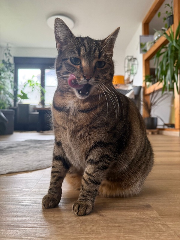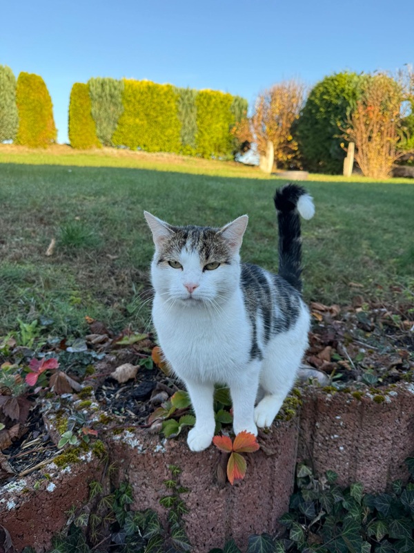 Wenn ihm langweilig ist oder er raus oder rein will, macht er sich mit lautem Maunzen bemerktbar - denn er liebt es draußen zu sein und dreht öfter auch mal größer Runden, bei denen gerne mehrere Tage verstreichen drüfen. Am Ende sitzt er aber doch wieder vor der Terassentür und tut, als ob er nie weg gewesen wäre.