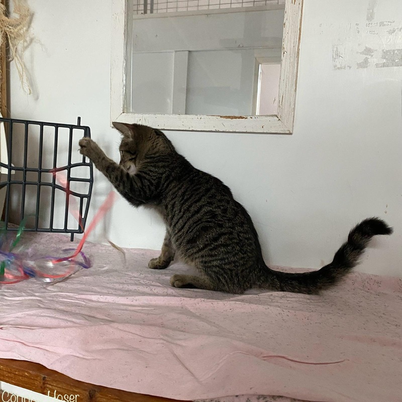 Die süße kleine Nunu haben wir von unserem Partnerverein, der Tierhilfe Hoffnung, übernommen. Diese zarte, kleine Schönheit ist einfach nur klasse! Klein aber oho - kann man bei ihr sagen. Sie ist und bleibt wohl immer klein und zierlich. Erobert dadurch die Herzen im Sturm. Kommt man in das Zimmer, in dem sie mit Artgenossen lebt, dann freut sie sich über jeden Kontakt! Sie mag es gestreichelt zu werden, liebt Spieleinheiten und wenn der Mensch nicht greifbar ist, dann tobt sie gerne mit ihren Freunden durchs Zimmer. Da wird die Kugelbahn bespielt, da wird erkundet, sich gekabbelt und den Kratzbaum rauf und runter gedüst.