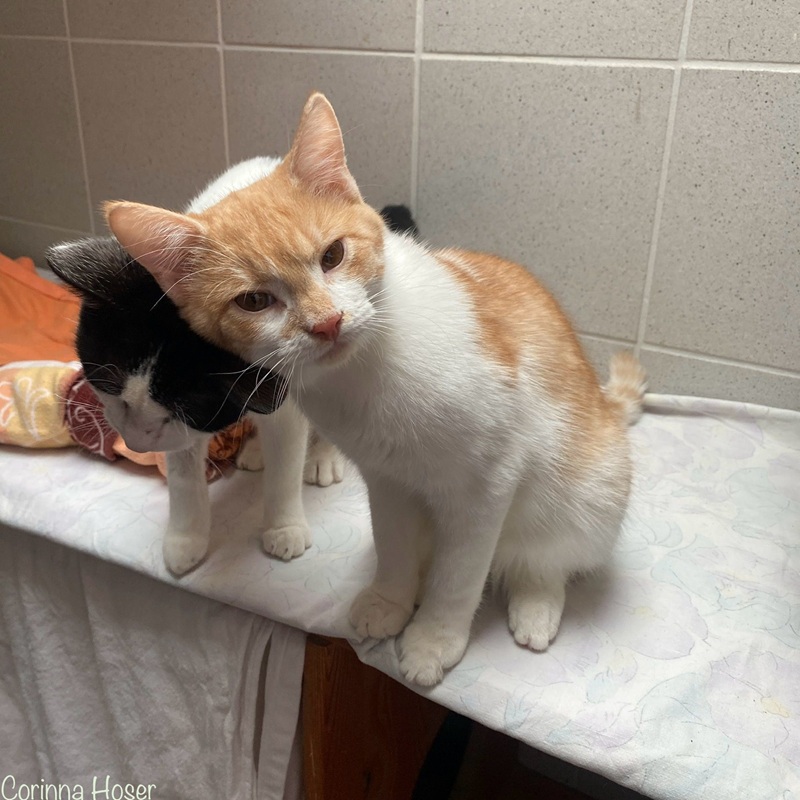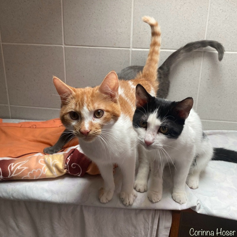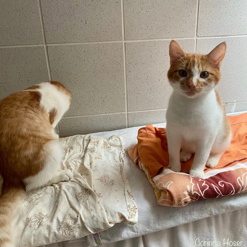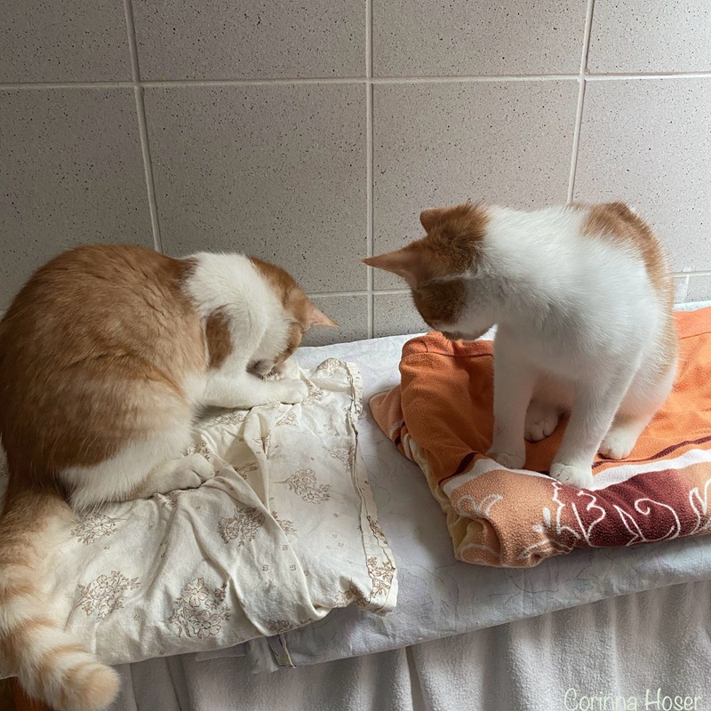 Rainer und Siggi haben wir von unserem befreundetem Verein, der Tierhilfe Hoffnung, übernommen. Die beiden Brüder suchen gemeinsam ein Zuhause was Spiel, Spaß und Überraschungen verspricht. Sie sind aufgeschlossen bei allem und jedem. Kommt man ins Zimmer, dann wird man von den Brüdern begrüßt. Oft hecken sie auch gemeinsam was aus und Houdini - ähm also Rainer - zeigt seinen Zaubertrick: Katze ohne Körper. Tadaaaaa (siehe Foto).