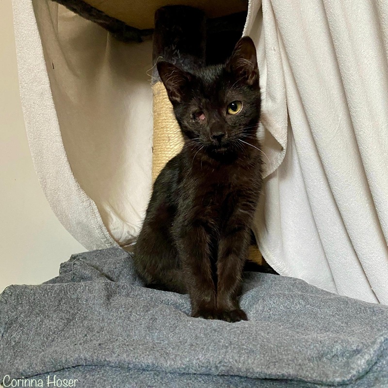 Das neue Zuhause sollte aufgrund von Crowleys Handicap (welches wir auch noch in der Augenklinik vorstellen werden) sehr verkehrsarm liegen, denn alles was von Rechts kommt wird er später bemerken, als Katzen mit gesunden Augen. Nach der Kastration und dem Vertrauensaufbau sollten die Jungs langsam an den Freigang gewöhnt werden.
