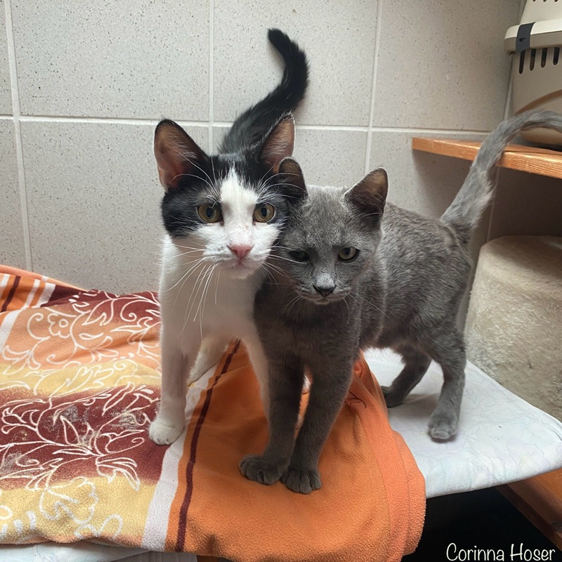 Crowley und Ramon haben wir von unserem befreundetem Verein, der Tierhilfe Hoffnung, übernommen. Die beiden Freunde suchen gemeinsam ein Zuhause was Spiel, Spaß und Überraschungen verspricht. Ramon ist sehr aufgeschlossen bei allem und jedem. Kommt man ins Zimmer, dann wird man von ihm sofort begrüßt. Crowley braucht noch seine Zeit um uns Menschen wirklich toll zu finden. Dabei können Sie ihm gern helfen. Während Ramon jede Streicheleinheit genießt, hat Crowley noch so seine Bedenken, ob das wirklich so toll ist. Er darf es noch lernen wie toll das alles wirklich ist. Schließlich hat er es nicht wirklich mitbekommen und so ist Vorsicht besser als Nachsicht - so sein Motto. Er hüpft aber mit seinen Artgenossen quer durchs Zimmer und steht ihnen mit Spiel und Spaß in nichts nach. Ramon und Crowley vermitteln wir zusammen, da sich beide sehr gut verstehen und Ramon ihn an die Pfote nimmt und nehmen wird in der Zukunft. Sie kommen mit ihren Artgenossen hervorragend klar.