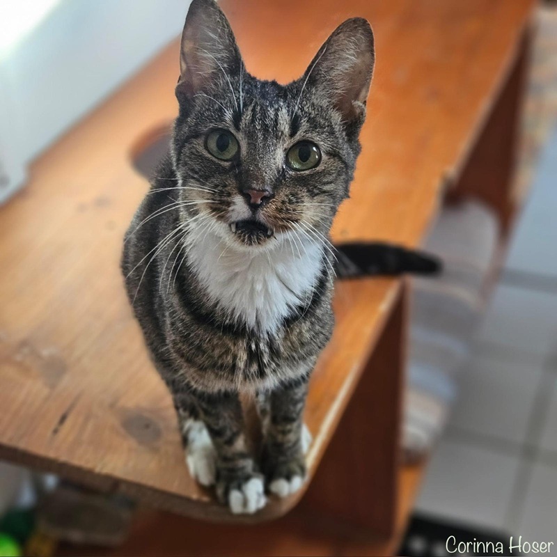 Die kleinwüchsige Katzendame kann man nicht übersehen. Kommt man ins Zimmer ist sie eine der Ersten, die den Menschen in beschlag nehmen. Sie möchte bitte den ganzen Tag kuscheln. Kann man es ihr verdenken? Sie muss soooo viel nachholen. Gerne klettert sie auf die Schulter und schmust dann ausgiebig mit ihrem Menschen. Sie ist klein aber oho. Eine echte Kampfschmuserin eben. Serafina versteht sich mit ihren Artgenossen und kennt (wie oben erwähnt) Hunde.