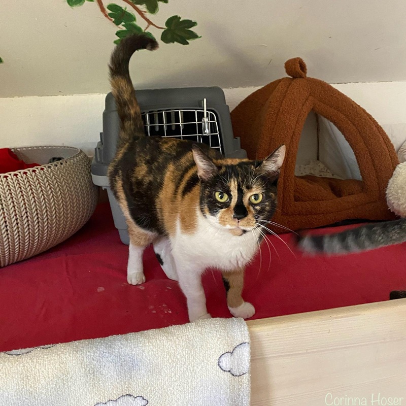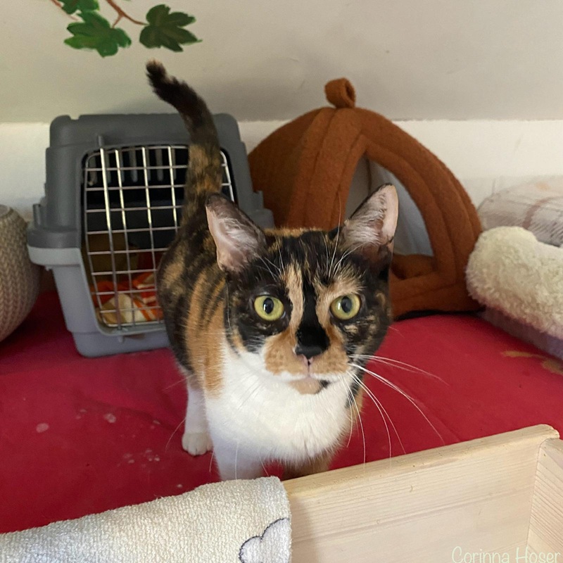 Für sie und Holly wäre ein ruhiges Zuhause wünschenswert. Eher keine Kinder. Nach dem Vertrauensaufbau und der Eingewöhnungszeit wäre es schön, wenn sie Freigang in einer verkehrsarmen Wohnlage bekommen würden.