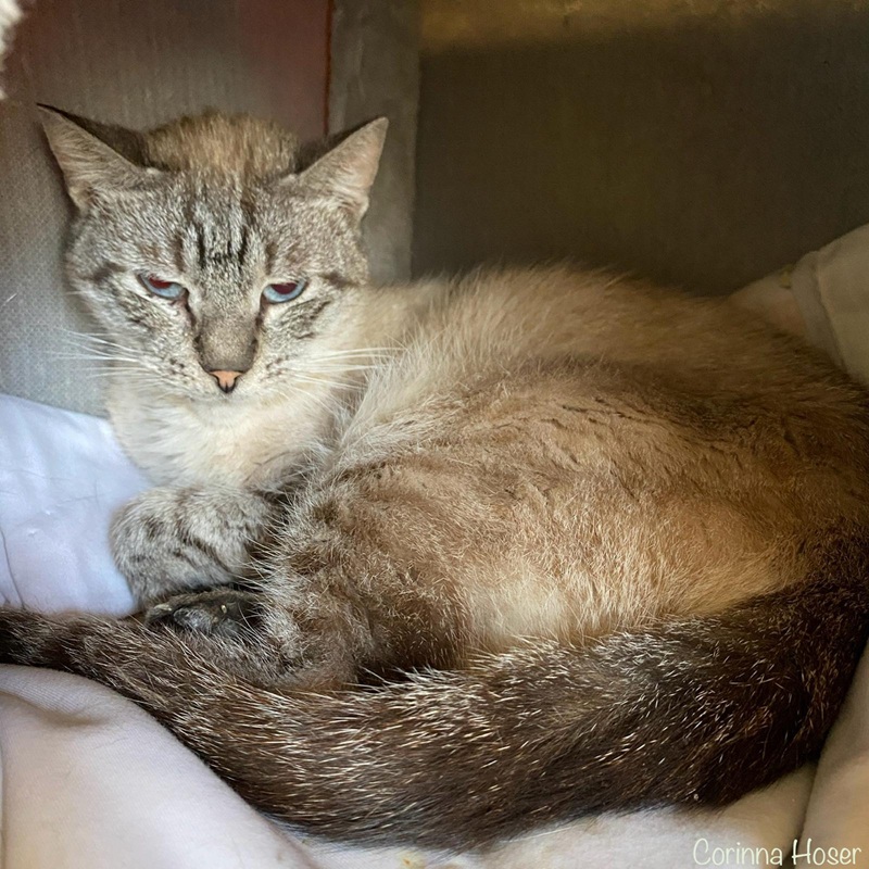 Toffee haben wir von unserem Partnerverein, der Tierhilfe Hoffnung, übernommen. Er ist einer von 23 Katzen die zusammen mit 114 Hunden auf einem Hof gelebt haben und die durch die Tierschutz Polizei gesichert wurden.