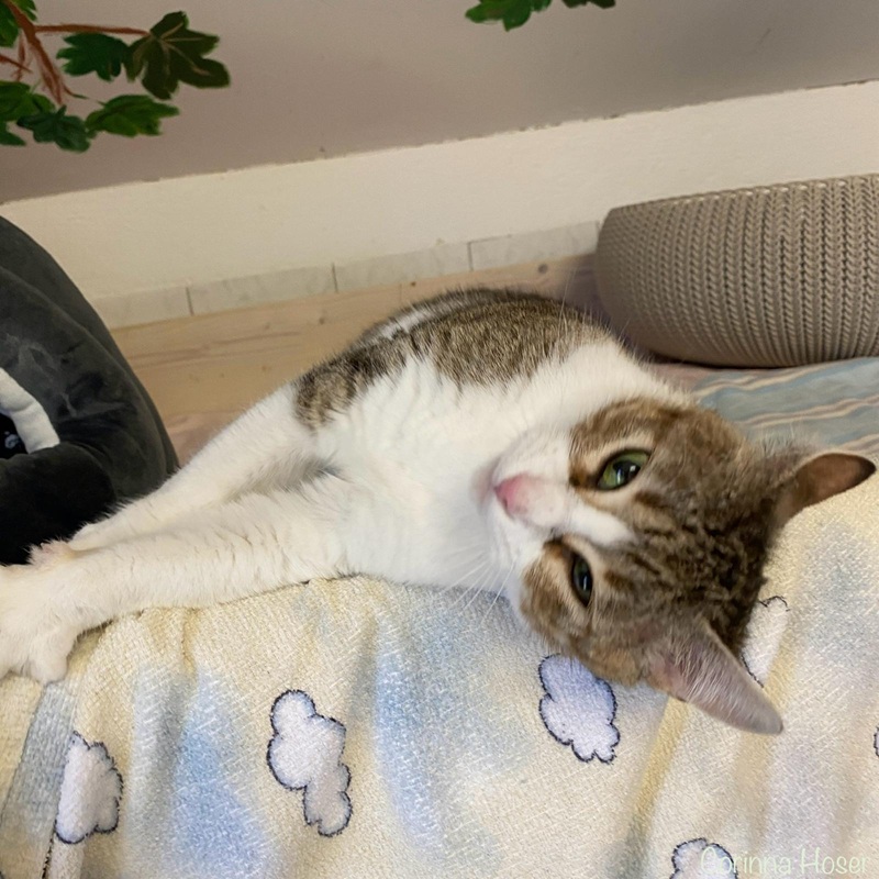 Kessi ist so eine liebe und verschmuste Katze. Sie liebt den Menschen wirklich sehr und schätzt ein ruhiges Zuhause. Mit Artgenossen kommt sie sehr gut klar. Ihr neues Zuhause sollte ihr nach Eingewöhnung und Vertrauensaufbau wieder Freigang gewähren. Manchmal kann Kessi auch etwas übermütig werden und benutzt dann die Krallen um den Arm festzuhalten und zu spielen. Sie kann quirlig sein und dies sollte man auf jedenfall wissen. Vielleicht wartet ein sehr sozialer und ebenfalls verspielter Artgenosse auf sie oder mit ihr zieht eine Freundin aus? Bei Situationen die sie nicht kennt oder die ihr unheimlich sind zeigt sie ängstliches Verhalten und Unsicherheit. Kinder sind der Katzendame auch suspekt und zu laut. Da versteckt sie sich. Daher wäre ein Zuhause, wo sie charakterlich rein passt perfekt.