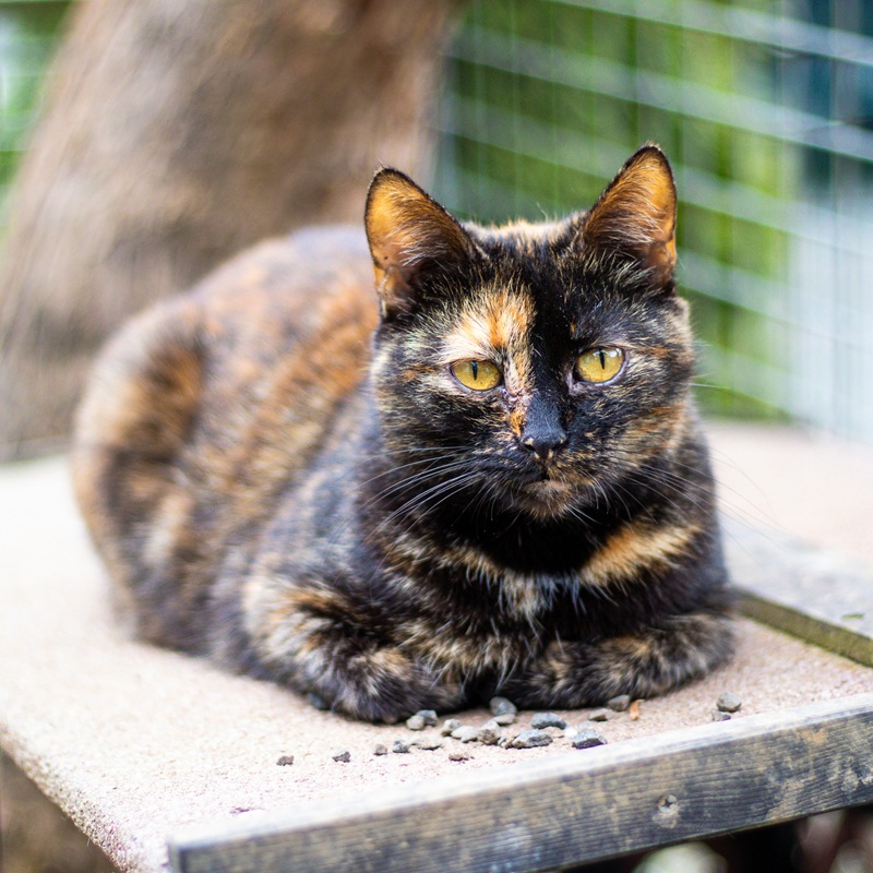 Holly haben wir von unserem Partnerverein, der Tierhilfe Hoffnung, übernommen. Sie ist eine von 23 Katzen die zusammen mit 114 Hunden auf einem Hof gelebt haben und die durch die Tierschutz Polizei gesichert wurden.