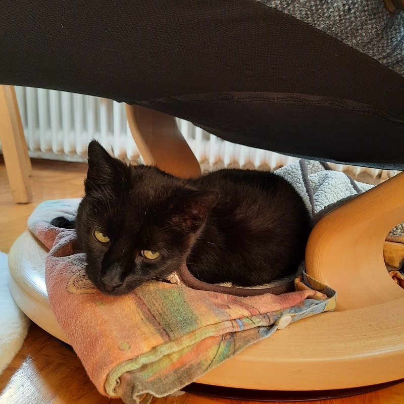 Vier Wochen lang war ich jeden Tag bei ihm. Das hat unsere Bindung gestärkt und er fing irgendwann an (wenn ich in sein Zimmer kam und ihn fröhlich begrüßte) laut zu miauen und aus seinem Versteck zu kommen, mir um die Beine zu streifen und Schmuseeinheiten einzufordern.