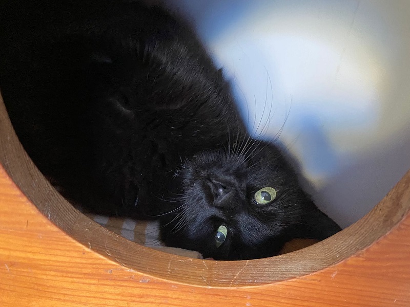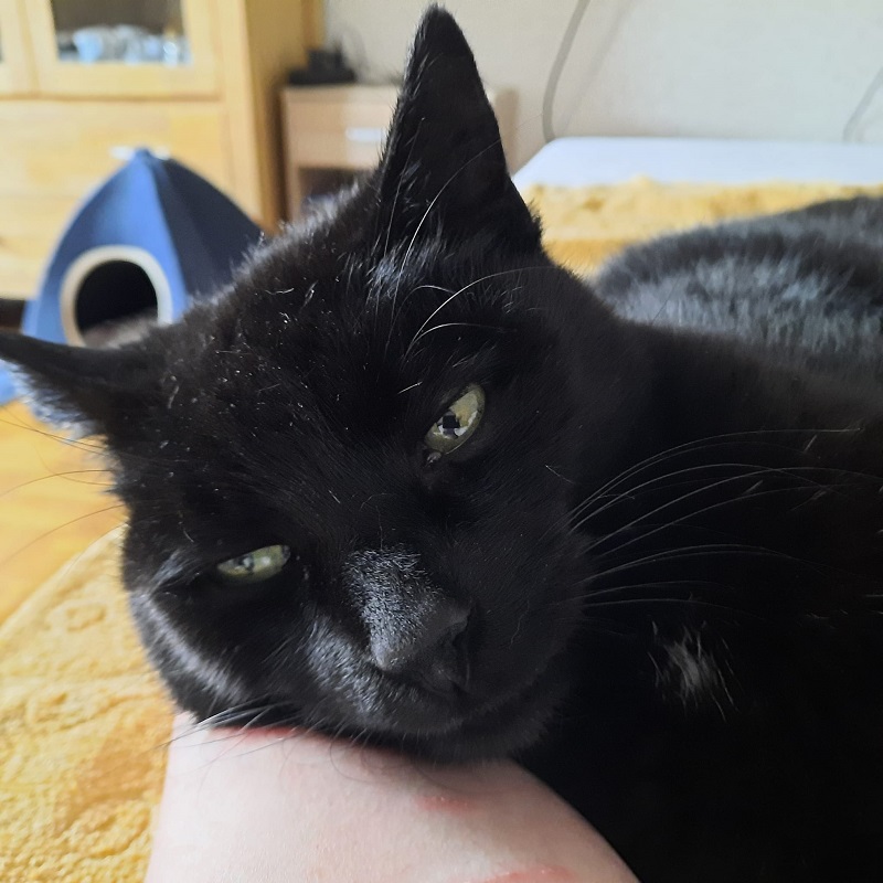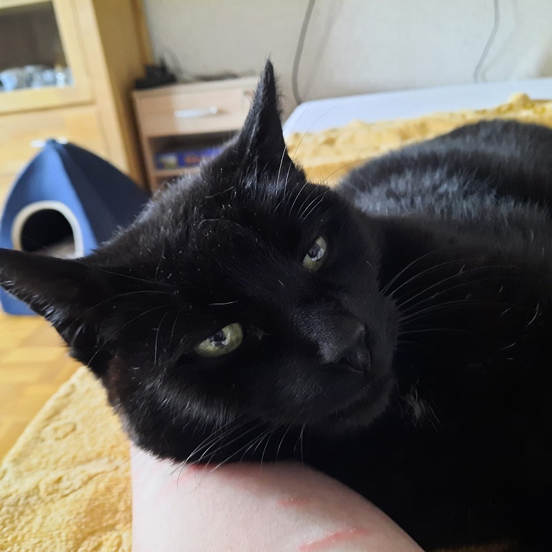 Als ich die schwarze Schönheit letztes Jahr Dezember im Tierheim kennenlernte hat er mich gleich in seinen Bann gezogen, aber er machte mir schnell klar wenn ich ihm zu nah kam, Abstand zu halten indem er mich anfauchte oder in ein anderes Versteck flüchtete. Er hatte große Angst.