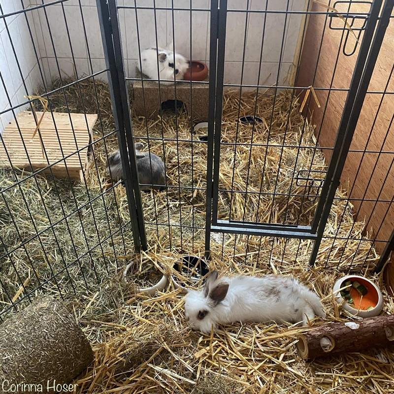 Trick und Track wurden zusammen mit Tick bei uns abgegeben. Leider fingen sie nach einer Zeit an Tick zu beißen, weshalb wir sie trennen mussten. Trick und Track verstehen sich gut und suchen daher auch gemeinsam ein schönes Zuhause. Gewohnt sind sie an die Innenhaltung, im neuen Zuhause benötigen sie mindestens 6m² Grundfläche und täglich sehr viel Beschäftigung und Abwechslung. Ihre Ernährung umfasst Trockenfutter, Heu und Frischfutter. Als Fluchttiere brauchen sie einfühlsame Pflege und Geduld. Lernen Sie die Beiden gerne kennen.
