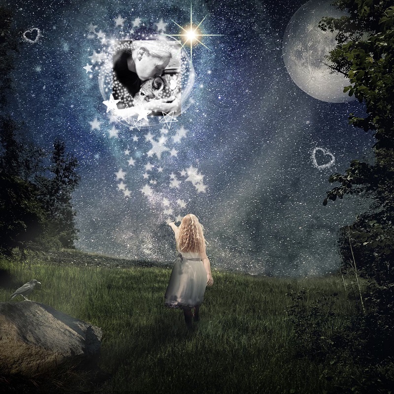Liebes Ömili, wir lassen die Sterne für dich fliegen. Du hast mehr als nur einen Stern verdient. Einen Sternenregen möchten wir dir schenken, damit es überall um deine trüben Augen und deine tauben Ohren und deinen ausgemergelten Körper herum glänzt und glitzert, so lange bis du voller Freude und mit gespitzten Öhrchen und wachem Blick über endlose Wiesen rennst, in der Gewissheit, im irdischen Leben einmal Liebe mit all seiner Macht erfahren zu haben.