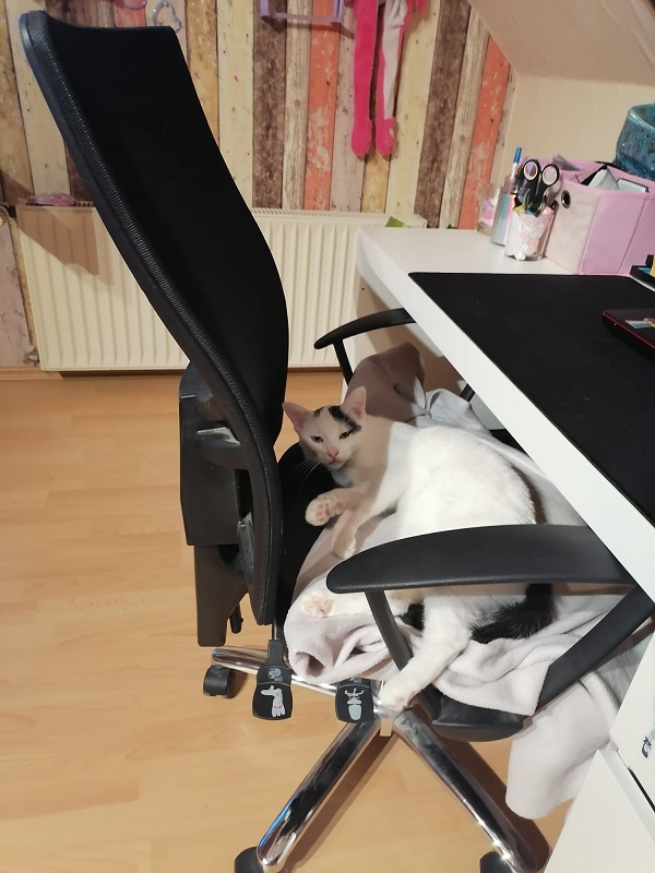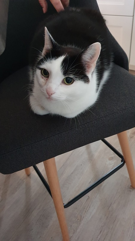 Fast zeitgleich habe ich mein neues Frauchen entdeckt und erobert. Es war Liebe auf den ersten Blick. Sie hat mich erst gar nicht wahrgenommen. Ich streckte meine beiden Pfötchen mit weißen Handschuhen durchs Gitter nach ihr aus, um sie zu erhaschen. Sogar verteidigte ich sie permanent gegen all die aufdringlichen, großen Hunde, welche um mich herum waren und mich verdrängten. Was Frauchen fast davon abhielt mich zur Pflege mit nach Hause zunehmen.