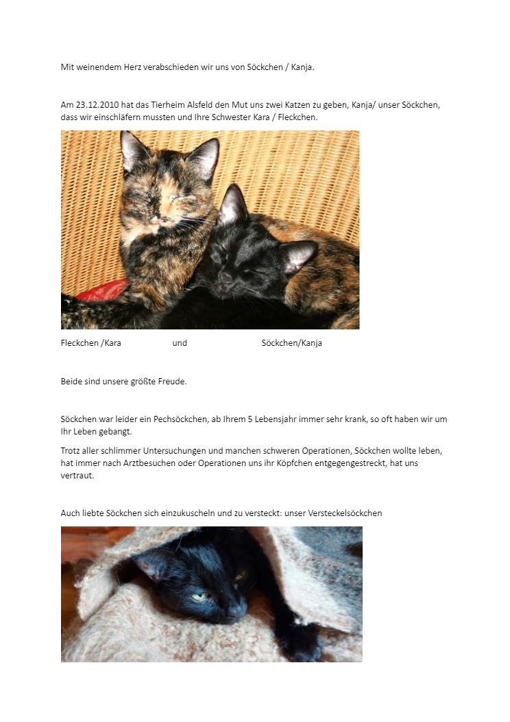 Wir danken Familie Liebing von ganzem Herzen, dass sie den Beiden eine so tolle Zeit geschenkt haben und für diesen wundervollen Nachruf.