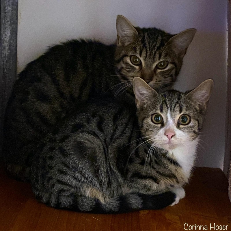 Shila und Felix wurden zusammen mit ihren Geschwistern Fieli und Max bei uns abgegeben. Die 4 wurden wild geboren und so nahmen sich tierliebe Menschen den 4 Katzenkindern an und versuchten sie privat zu vermitteln. Leider ohne Erfolg, so dass sie nun die Chance bei uns gefunden haben ein tolles Zuhause für sich zu ergattern.
