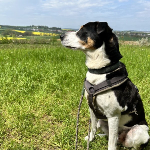 Meine Leinenführigkeit ist je nach Ort in Ordnung und Ausbaufähig. Gibt es etwas Neues zu entdecken, überall neue Gerüche, möchte ich diese gerne eifrig erkunden. Ich kann schon einige Kommandos, bin intelligent und lernwillig.