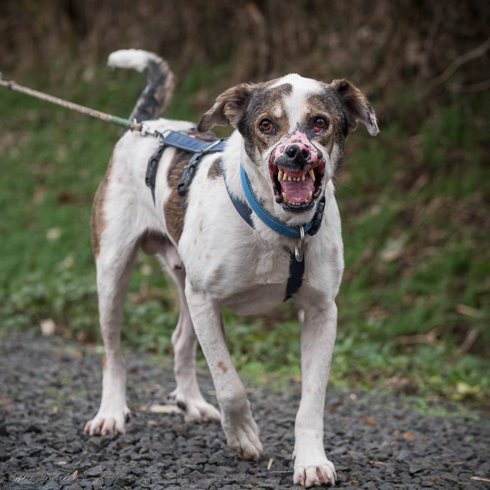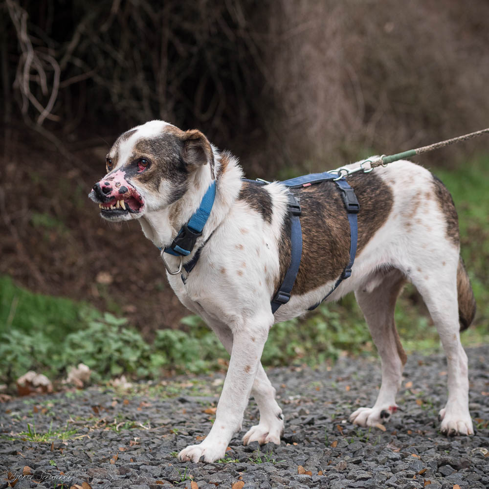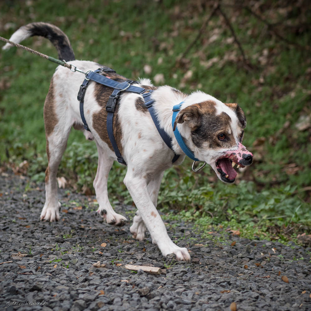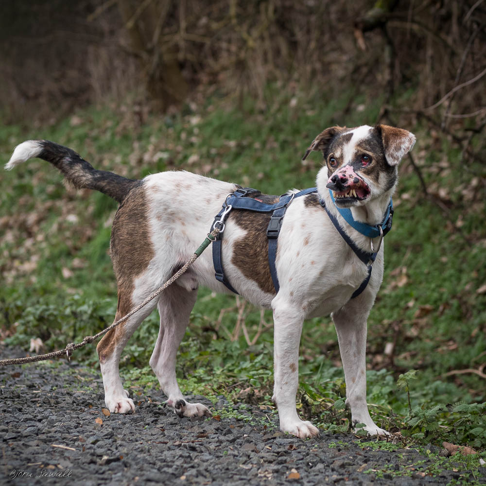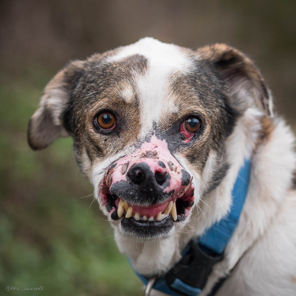 Hier bei uns behandeln wir ihn wie jeden anderen Hund und das macht ihm so richtig Freude. Aus dem so zurückhaltenden, kauernden Hund entwickelt sich gerade ein stattlicher Rüde. Bolle ist in jedem Fall mit Hündinnen verträglich, bei Rüdenbegegnungen sind wir noch etwas vorsichtig, sein Gesicht darf auf keinen Fall noch zusätzlich verletzt werden. Fremden Menschen gegenüber verhält er sich noch sehr zurückhaltend, aber er wird täglich mutiger. Menschen, die Bolle für sich gewinnen möchten, sollten Hundeerfahrung haben.