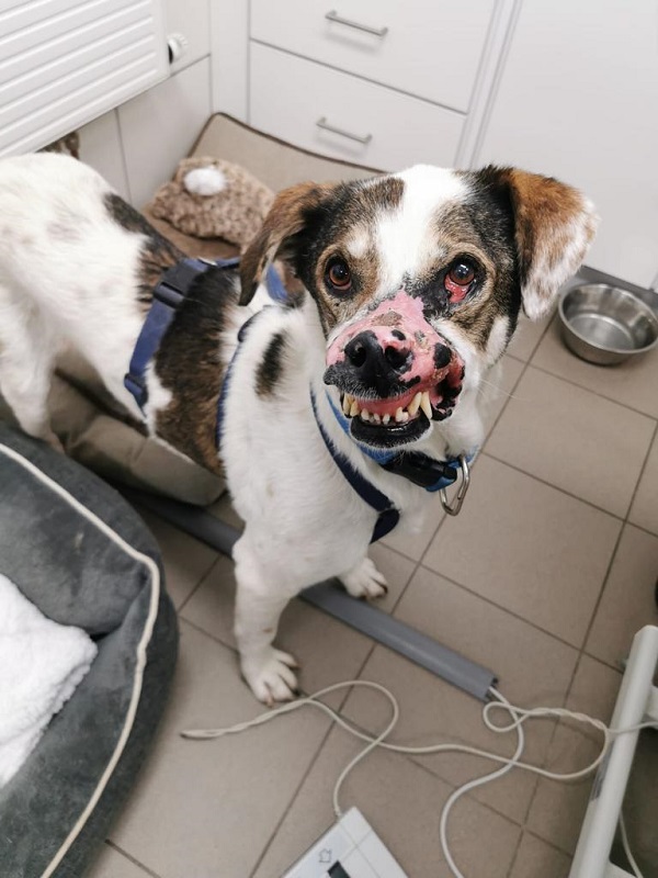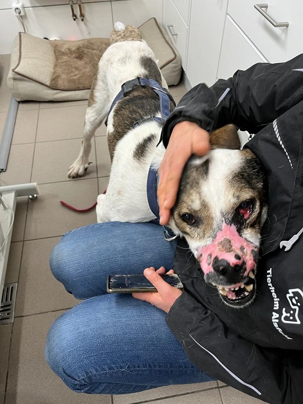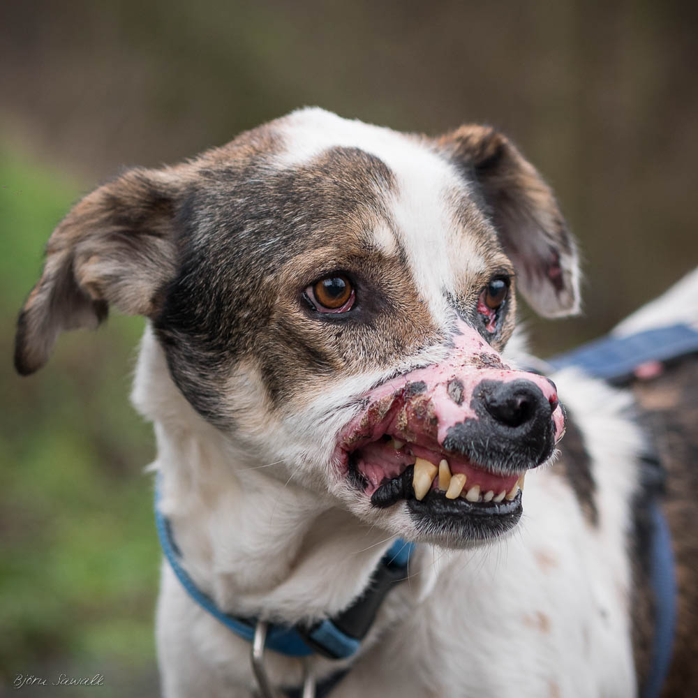 Nun wissen wir, was mit Bolles wunderschönem Gesicht geschehen ist. Er leidet unter einer Autoimmunkrankheit . Täglich bekommt er jetzt Tabletten und wir hoffen, dass wir so das Fortschreiten der Krankeit unterbinden können und er hier und auch später in einem Zuhause von Tag zu Tag glücklicher werden kann.