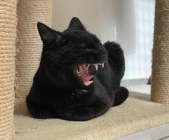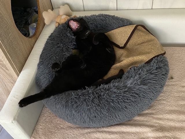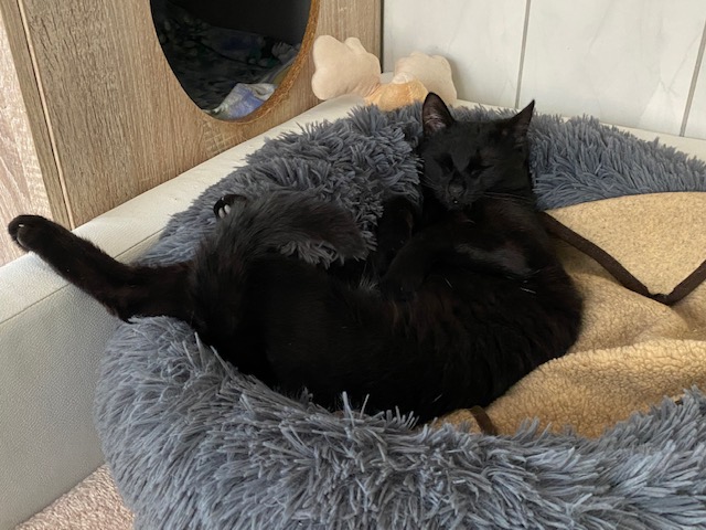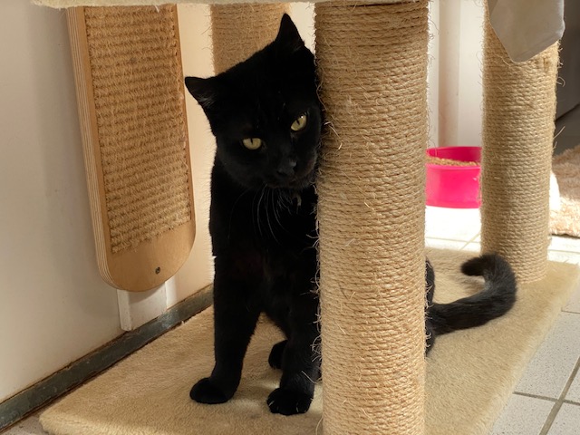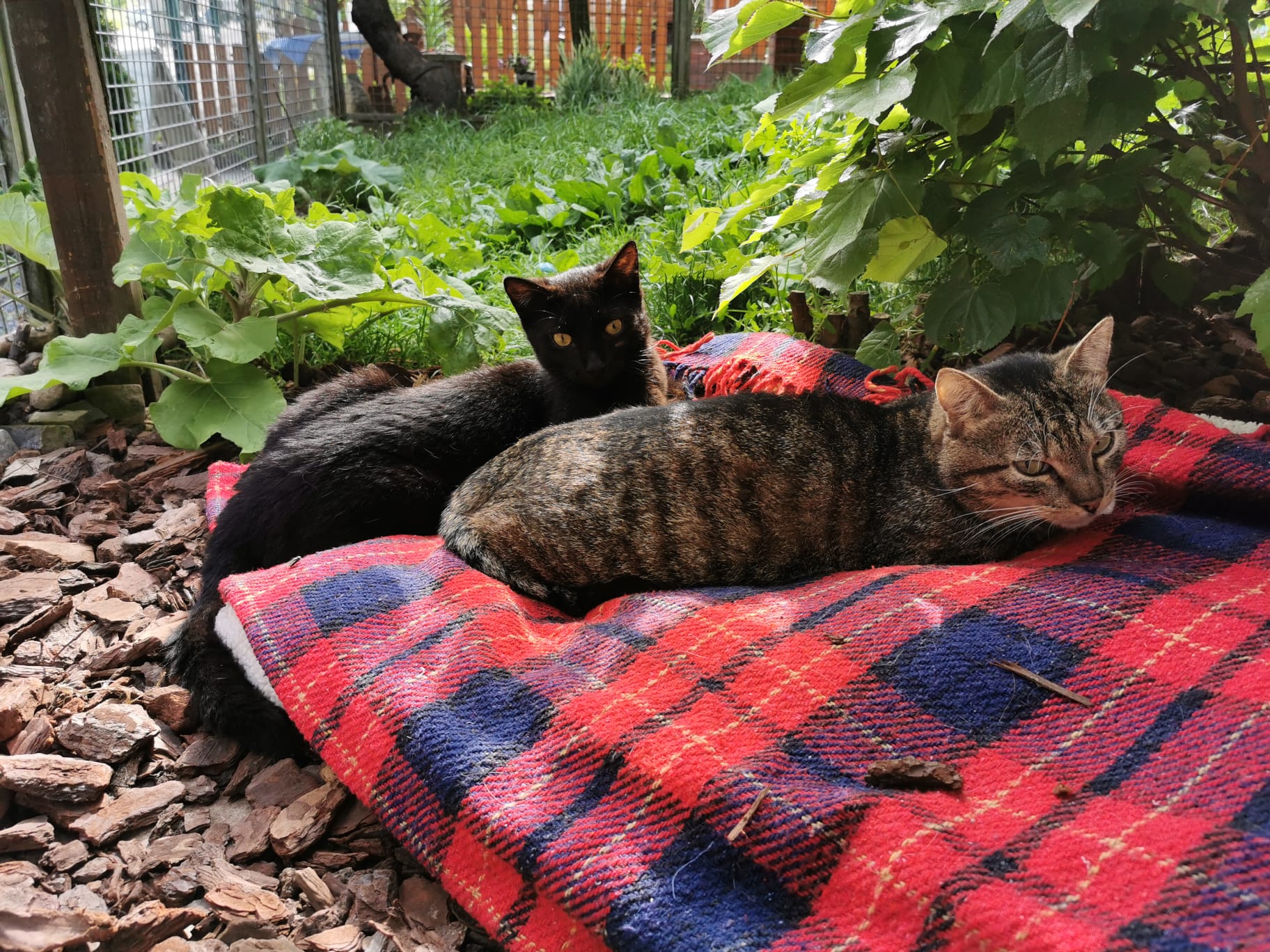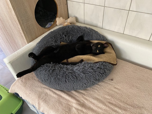 Ja hier kommen zwei coole Typen. Roco und Faucho  – zwei Brüder. Sie waren einmal zu dritt, aber Zorro ist leider verstorben. Während Faucho neugierig ist, macht der andere seinem Namen erstmal alle Ehre und faucht. Aber alles nur heiße Luft. Alle haben sie den Menschen im Blick, nicht das dieser noch auf dumme Gedanken kommt. Leckereien werden gern genommen. Während Roco sich fast zutraut, diese aus der Hand zu nehmen, darf man Faucho sie in gebührendem Abstand hinlegen. Man muss sie einfach gern haben. Zwei schwarze Schönheiten! Wenn man mit ihnen arbeitet, dann werden die auch richtig toll im neuen Zuhause. Sie brauchen eben Sicherheit, immer die gleichen Menschen und einen strukturierten Ablauf, dann wird das auch klappen mit dem Vertrauensaufbau.