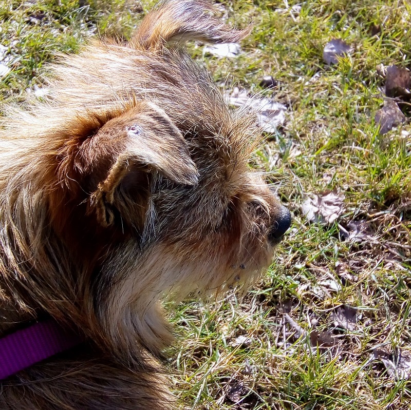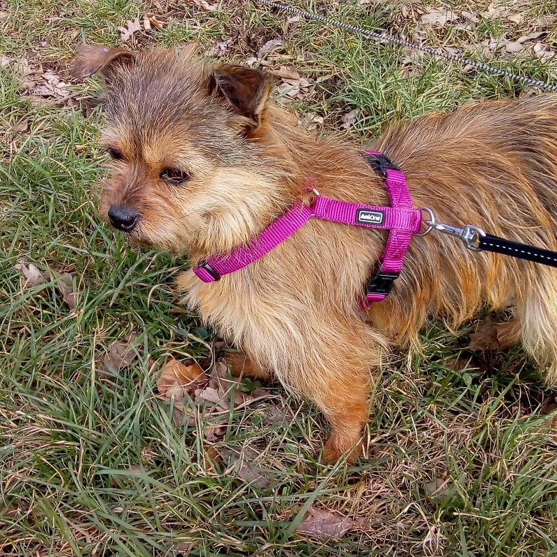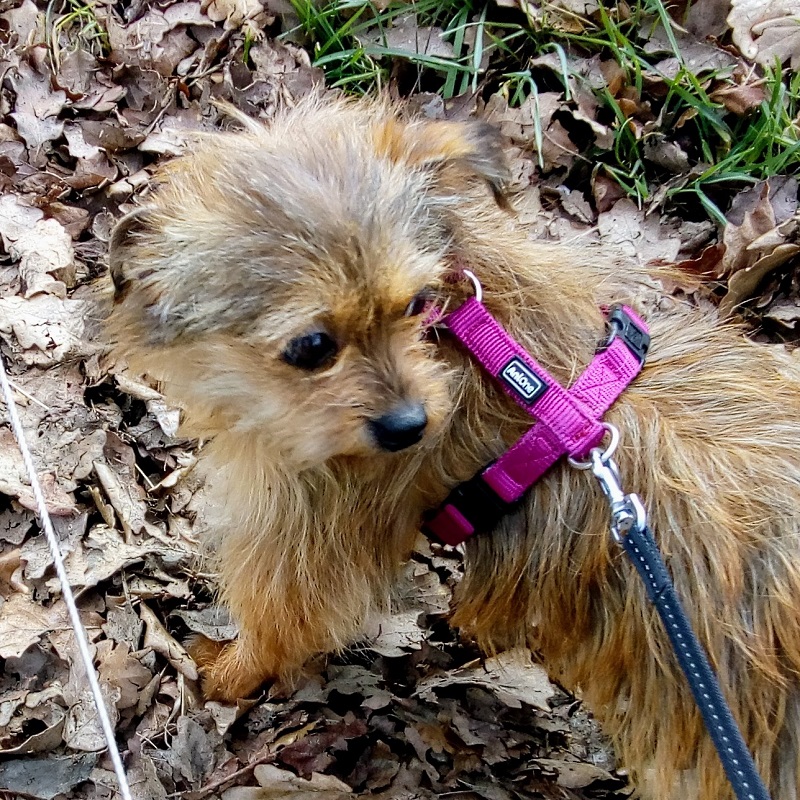 Sie macht schon am zweiten Tag Fortschritte Geschirr und Leine zu akzeptieren, Spazieren gehen findet sie super, wobei sie immer Blickkontakt hält.