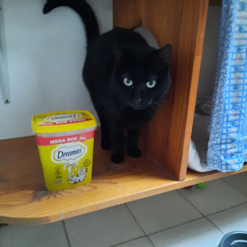 mein Name ist Bulma und mich muss man einfach erleben. Kommst du zu uns ins Zimmer, dann wirst du mich wohl als erstes entdecken. Denn ich bin neugierig und finde Menschen ganz interessant. Ich mag es gestreichelt zu werden und auch gegen Spiel und Spaß habe ich nichts einzuwenden. Mit den Artgenossen im Zimmer tob ich manchmal rum und hab dabei viel Freude. Wie du oben bereits gelesen hast, wurden meine Freundin Cosi und ich im Tierheim abgegeben. Wir hoffen, dass wir nicht allzu lange hier auf ein neues, tolles Heim warten müssen. Leckereien mag ich übrigens auch sehr gern. Man sagt schwarzen Katzen nach, dass sie einen sehr eigenen Kopf haben - ja dies kann ich bestätigen. Wenn ich was nicht will, dann will ich es nicht. Ich bin selbstbewusst und man wird mit mir dennoch viel Spaß haben. Wie oben bereits bei Cosi beschrieben, lebten wir bislang nur in Wohnungshaltung. Ich muss sagen, wenn man mir die Möglichkeit auf Freigang gibt, dann würde mich das bestimmt sehr freuen. Dazu sollte die Wohnlage aber sehr ländlich sein und keine stark befahrene Straße in der Nähe. Aber auch mit großzügiger Wohnungshaltung und gesichertem Auslauf wäre ich zufrieden. So, jetzt liegt es an dir meine Freundin Cosi und mich kennenzulernen. Uns gibt es nur im Doppelpack. Ein Doppelpack voll Katzenglück. Du wirst sehen, es lohnt sich uns zu adoptieren.