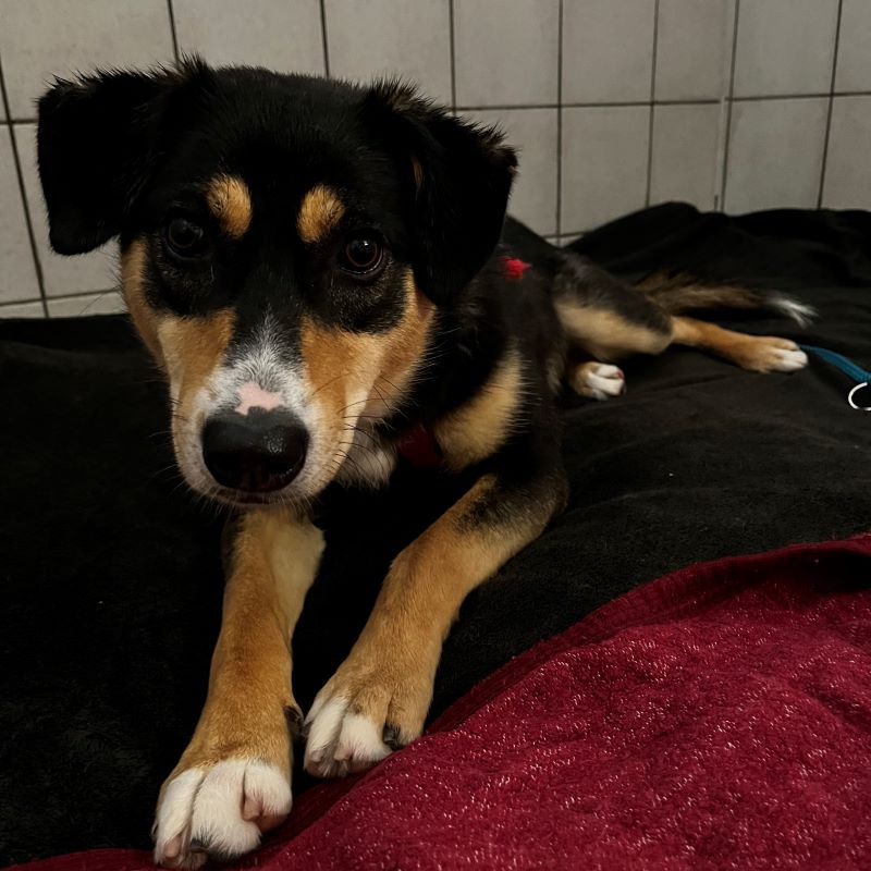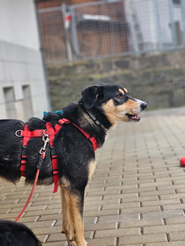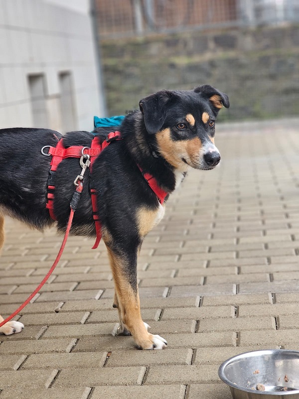 Ich komme ursprünglich aus Rumänien. Eine nette Familie hatte mich in Rumänien ausgesucht, bei denen ich einziehen sollte. Allerdings hatte ich sehr große Angst, vor den männlichen Familienmitgliedern, sodass ich wieder im Tierheim bin. Ich lebe mit ganz vielen verschiedenen Hunde zusammen, in einer großen Gruppe, das ist ein großer Spaß für mich. Im Umgang mit Menschen bin ich noch unsicher, aber ich freue mich über meine Pfleger und hüpfe vor ihnen ganz lustig hin und her.