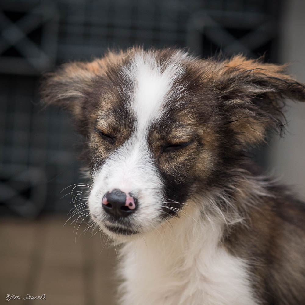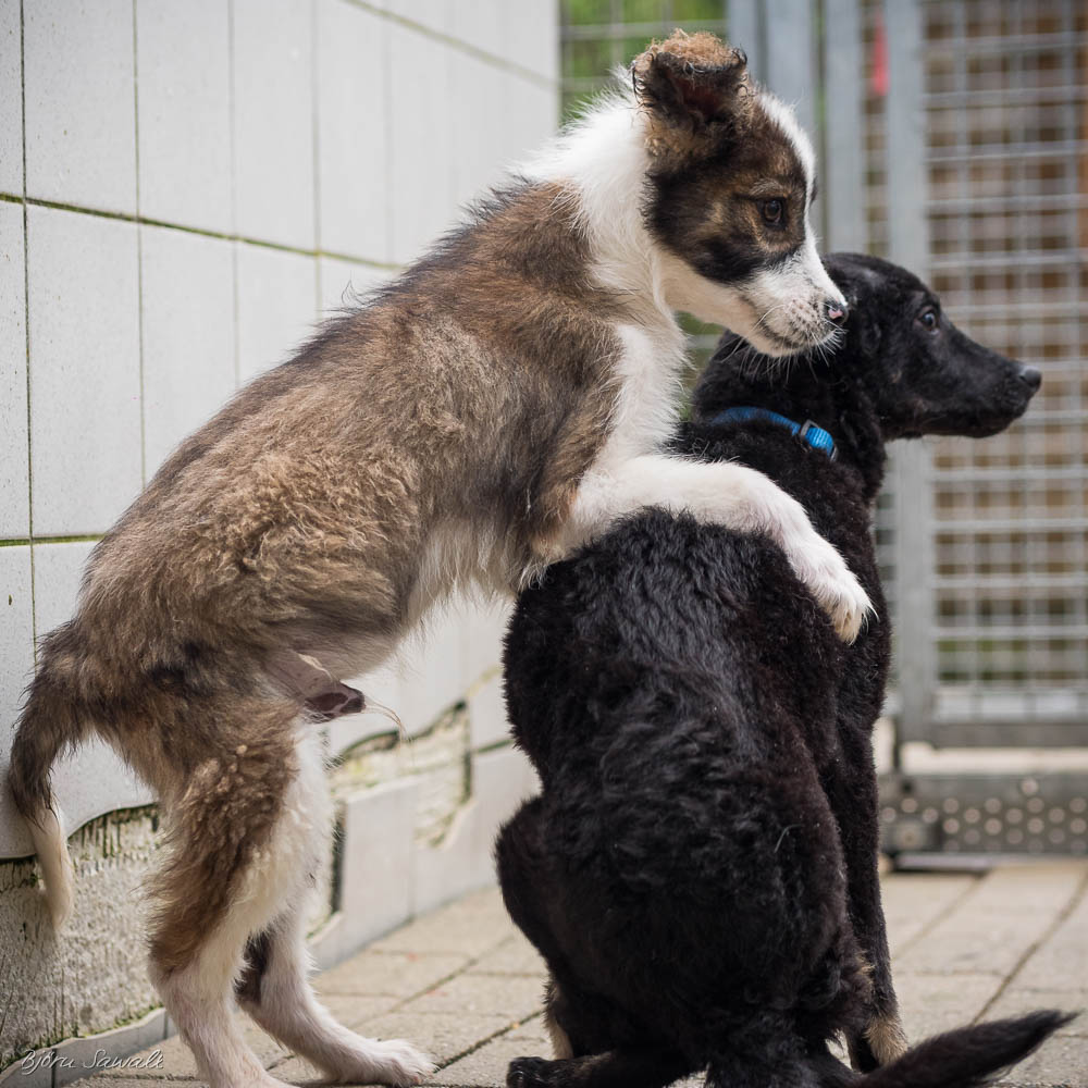 Schlumpf zeigt sich bei uns aufgeschlossen, neugierig und verschmust. Auch mit Kindern zeigt er sich vorbildlich und genißet die Streicheleinheiten. In unserer gemischten Hundegruppe fühlt er sich wohl.