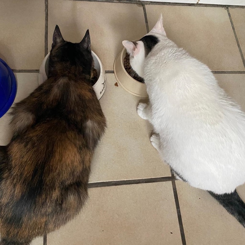 Minka und Daisy kamen im April 2023 als Abgabekatzen zu uns ins Tierheim, weil ihr Besitzer sich nicht mehr um sie kümmern konnte. Anfangs eher schüchterne Katzen haben sich in der Zeit zu richtigen Schmusetigern entwickelt.