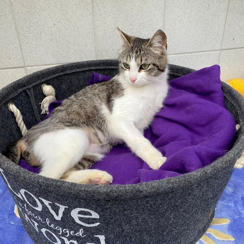 Spätzle kam am 14.04 von einen Partnerverein zu uns. Spätzle ist eine junge dynamische Katze, bei der das Spiel an erster Stelle steht. Langeweile war gestern! Das Beste ist es aber, wenn der Mensch und das Spielen zusammenkommen. Denn sie liebt auch Menschen über alles, ist verschmust und anhänglich.