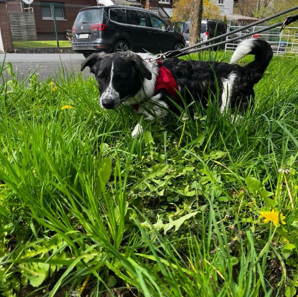 Luca ist nun schon seit Ende März diesen Jahres bei uns. Da er zeitweise ruhiger ist, geht er manchmal in unserer lustigen Junghundegruppe etwas unter. Möchte er aber gesehen werden, zeigt er sich in voller Größe😊, sozusagen ein versteckter, doch sichtbarer Juwel 💎 Hinter seiner meistens, zurückhaltenten Art steckt ein aufgeweckt unsicherer und unglaublich verschmuster Kerl, der auch mit Kindern und Katzen gut zurecht kommt! An der Leine gehen muss er noch feste üben. Luca lebt bei uns in einer komplett gemischten Hundegruppe und das macht er auch prima, aber an der Leine beim Spaziergang ist es so, dass, sobald ein Hund, den er nicht kennt, an ihm vorbei läuft, er sich ganz groß macht und bellt. Er muss noch so einiges lernen.